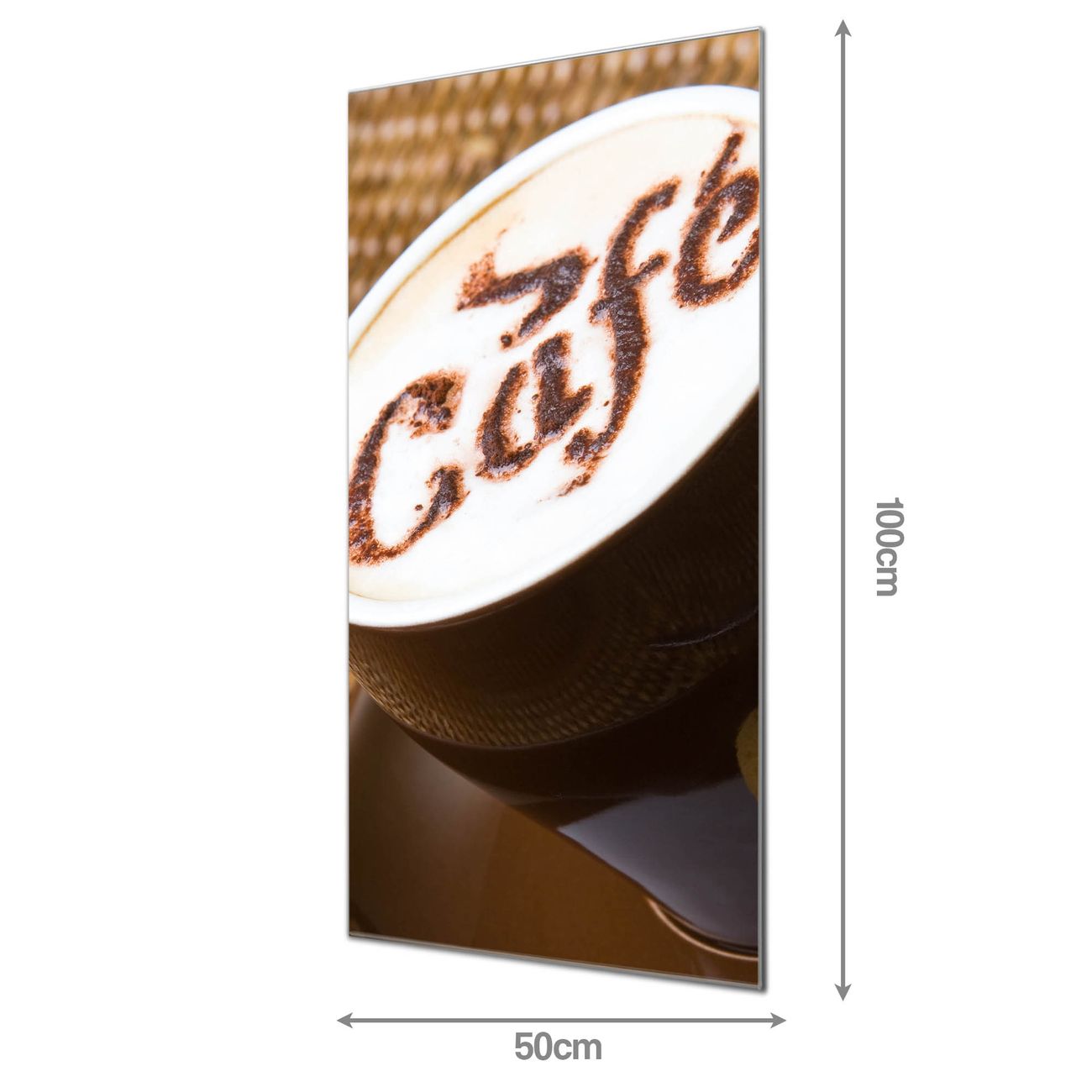Material: 4mm Sicherheitsglas mit Metallrückwand Eigenschaften: beschreibbar, magnetisch, kratzfest Maße: 50x100x0,6cm, 7,50 kg schwer Motiv Nummer 10093 Cafe Zubehör: inklusive 4 Neodym-Magnete