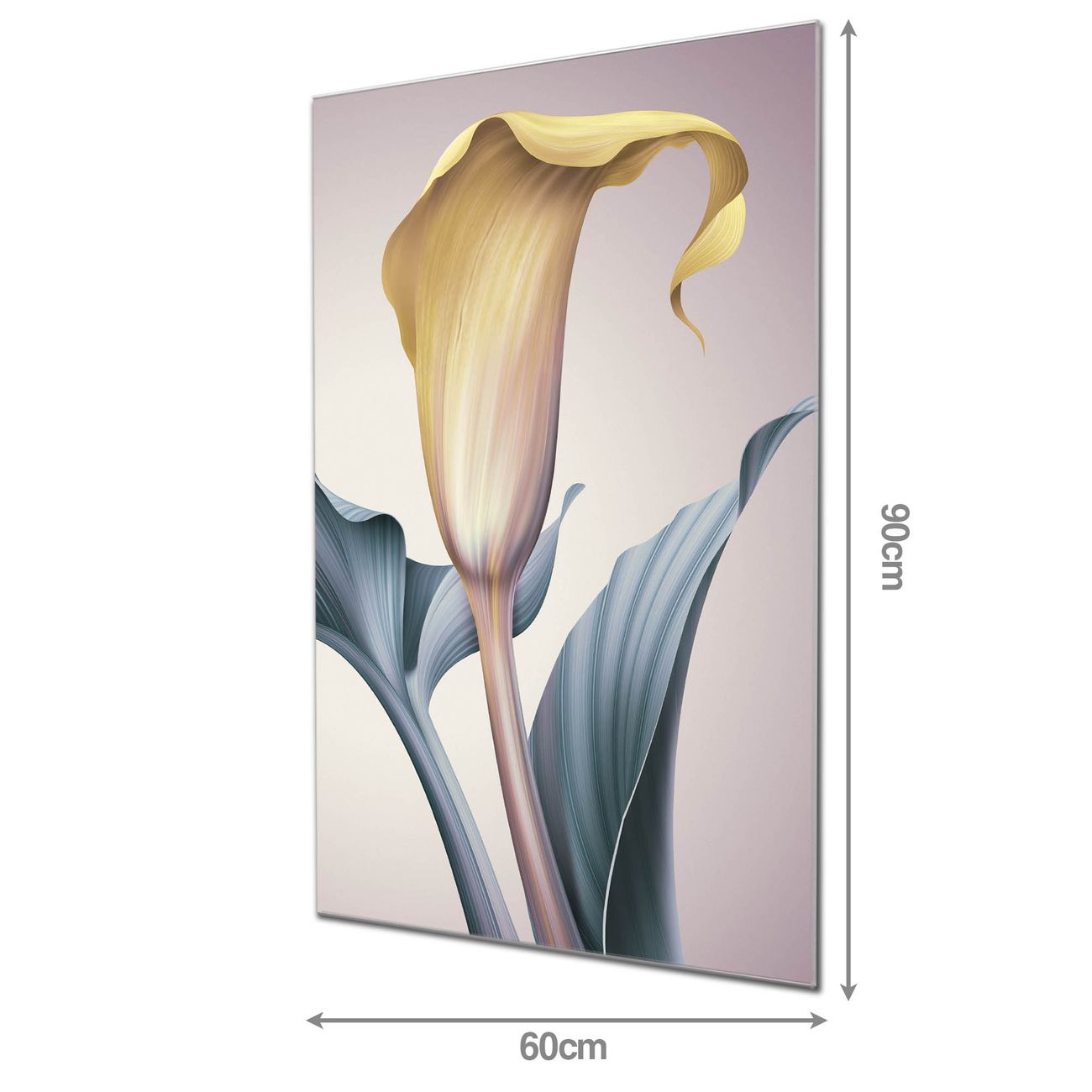 Material  4mm Sicherheitsglas mit Metallrückwand Eigenschaften  beschreibbar, magnetisch, kratzfest Maße  60x90x0,6cm, 8,10 kg schwer Motiv  Nummer 12339 Calla Zubehör  inklusive 4 Neodym-Magnete