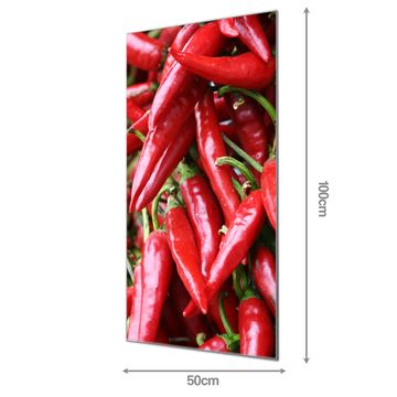 Material: 4mm Sicherheitsglas mit Metallrückwand Eigenschaften: beschreibbar, magnetisch, kratzfest Maße: 50x100x0,6cm, 7,50 kg schwer Motiv Nummer 10006 Chilli Zubehör: inklusive 4 Neodym-Magnete