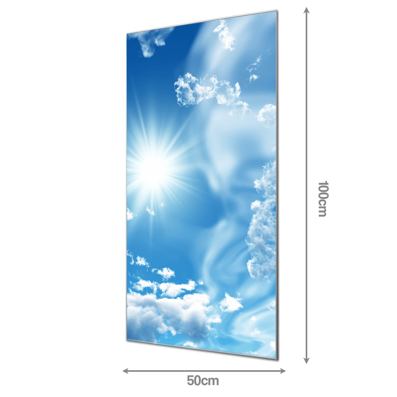 Material: 4mm Sicherheitsglas mit Metallrückwand Eigenschaften: beschreibbar, magnetisch, kratzfest Maße: 50x100x0,6cm, 7,50 kg schwer Motiv Nummer 10095 Clouds Zubehör: inklusive 4 Neodym-Magnete