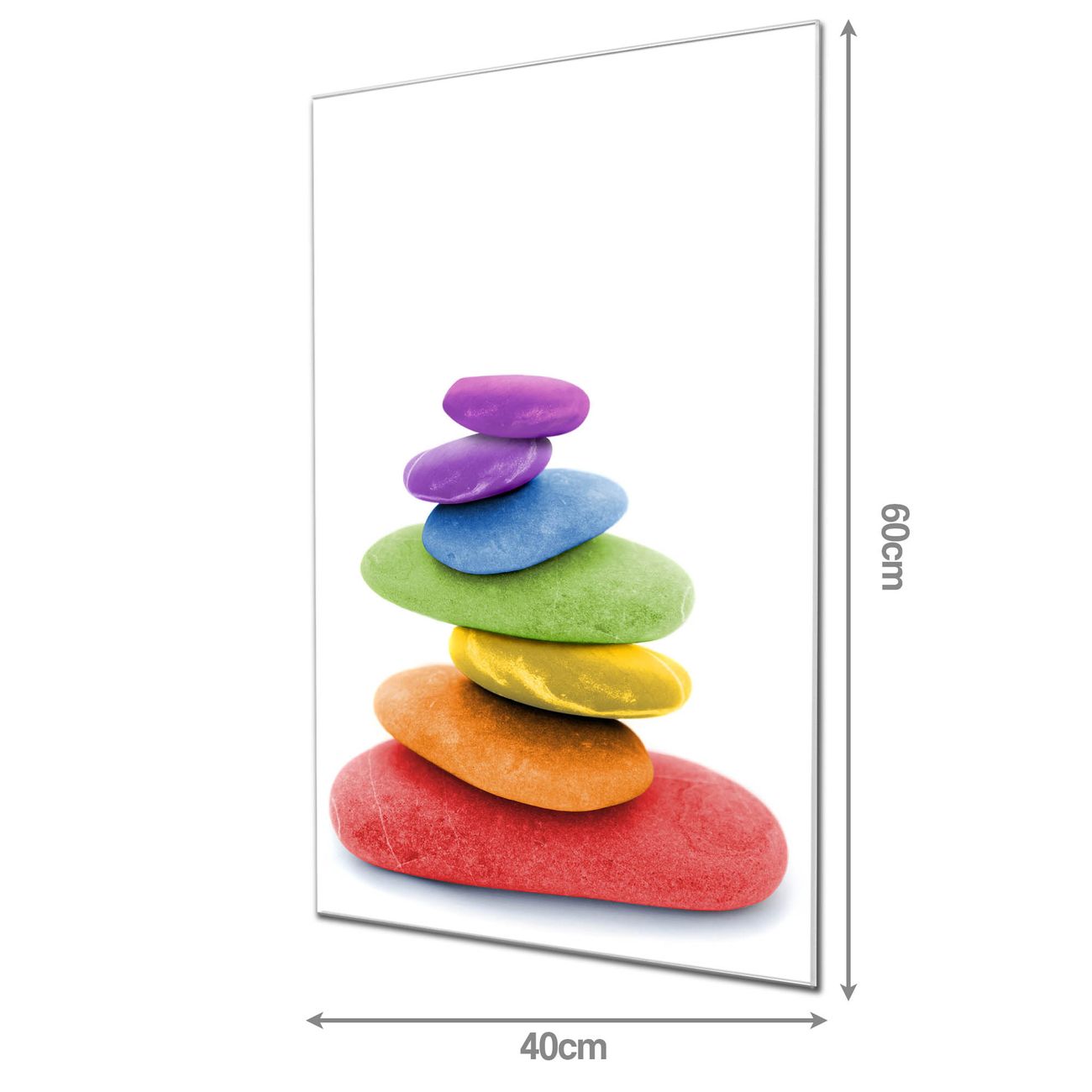 Material: 4mm Sicherheitsglas mit Metallrückwand Eigenschaften: beschreibbar, magnetisch, kratzfest Maße: 40x60x0,6cm, 3,60 kg schwer Motiv Nummer 10158 Coloured Stone Zubehör: inklusive 4 Neodym-Magnete