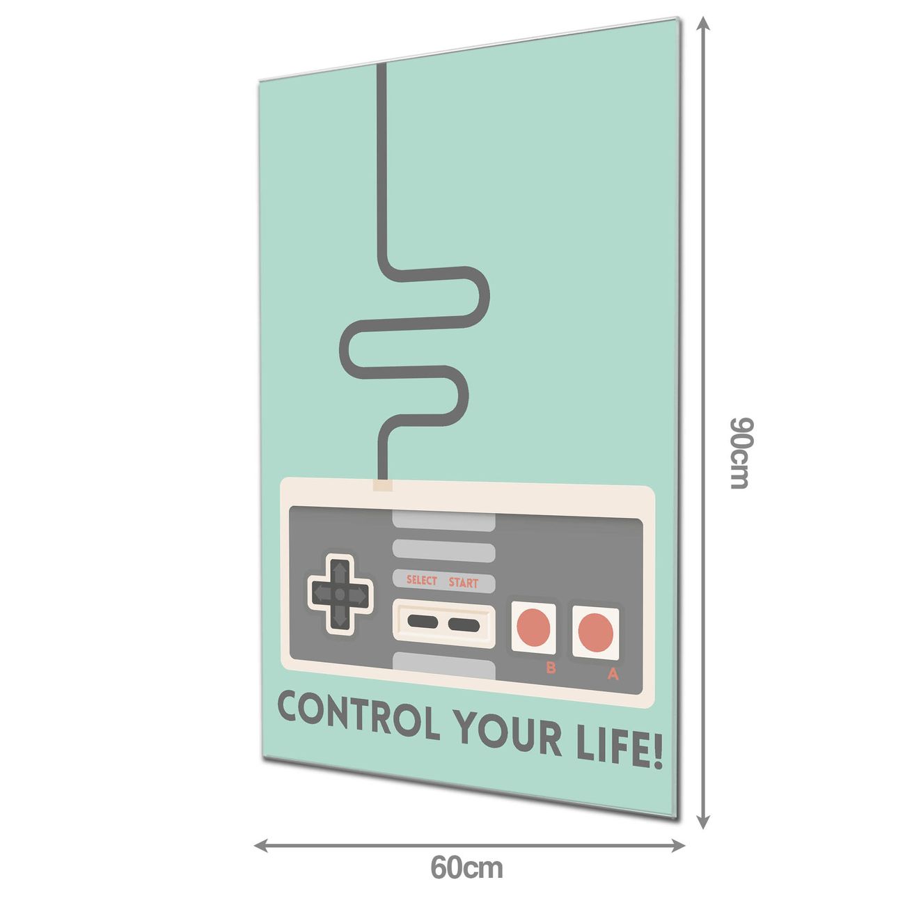 Material: 4mm Sicherheitsglas mit Metallrückwand Eigenschaften: beschreibbar, magnetisch, kratzfest Maße: 60x90x0,6cm, 8,10 kg schwer Motiv Nummer 12476 Control Zubehör: inklusive 4 Neodym-Magnete
