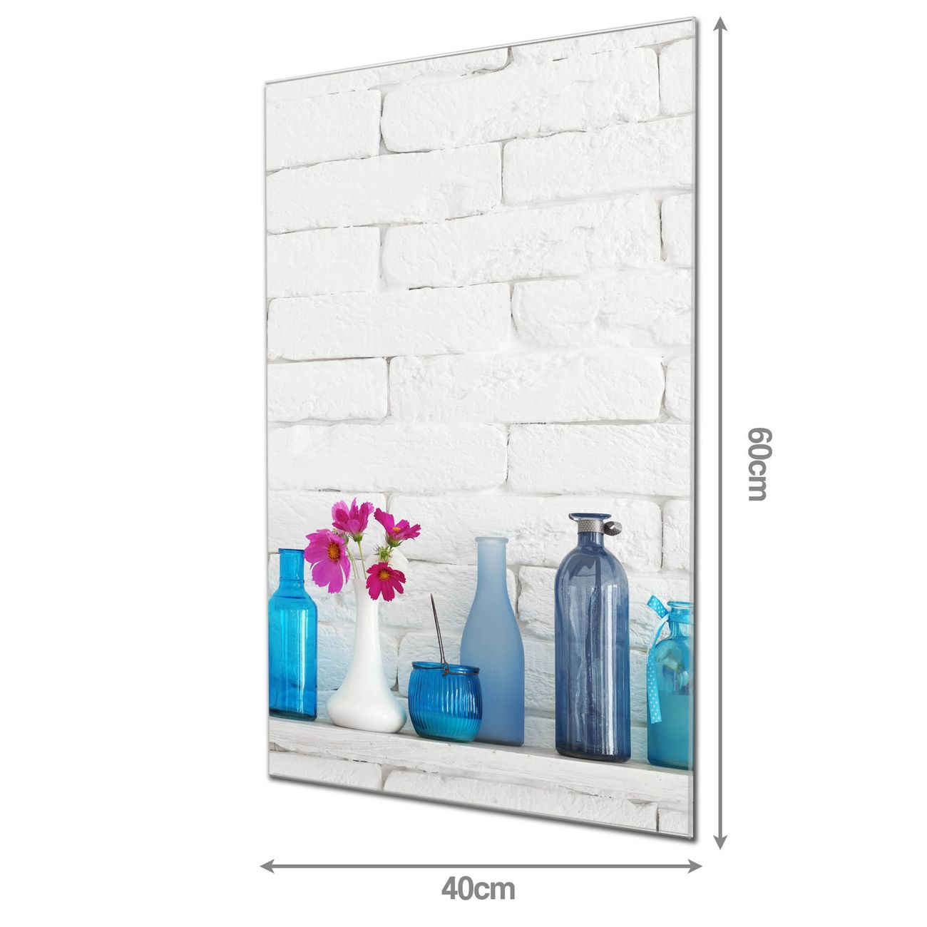 Material: 4mm Sicherheitsglas mit Metallrückwand Eigenschaften: beschreibbar, magnetisch, kratzfest Maße: 40x60x0,6cm, 3,60 kg schwer Motiv Nummer 11179 Dekoartikel Blau Zubehör: inklusive 4 Neodym-Magnete