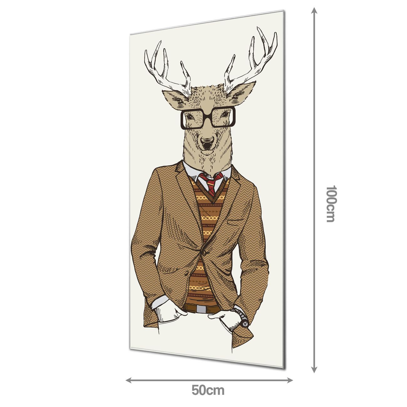 Material: 4mm Sicherheitsglas mit Metallrückwand Eigenschaften: beschreibbar, magnetisch, kratzfest Maße: 50x100x0,6cm, 7,50 kg schwer Motiv Nummer 12097 Doktor Hirsch Zubehör: inklusive 4 Neodym-Magnete