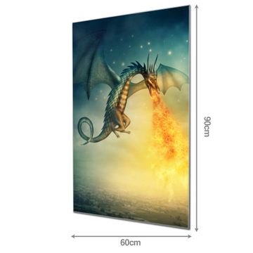 Material  4mm Sicherheitsglas mit Metallrückwand Eigenschaften  beschreibbar, magnetisch, kratzfest Maße  60x90x0,6cm, 8,10 kg schwer Motiv  Nummer 10527 Drachen Zubehör  inklusive 4 Neodym-Magnete