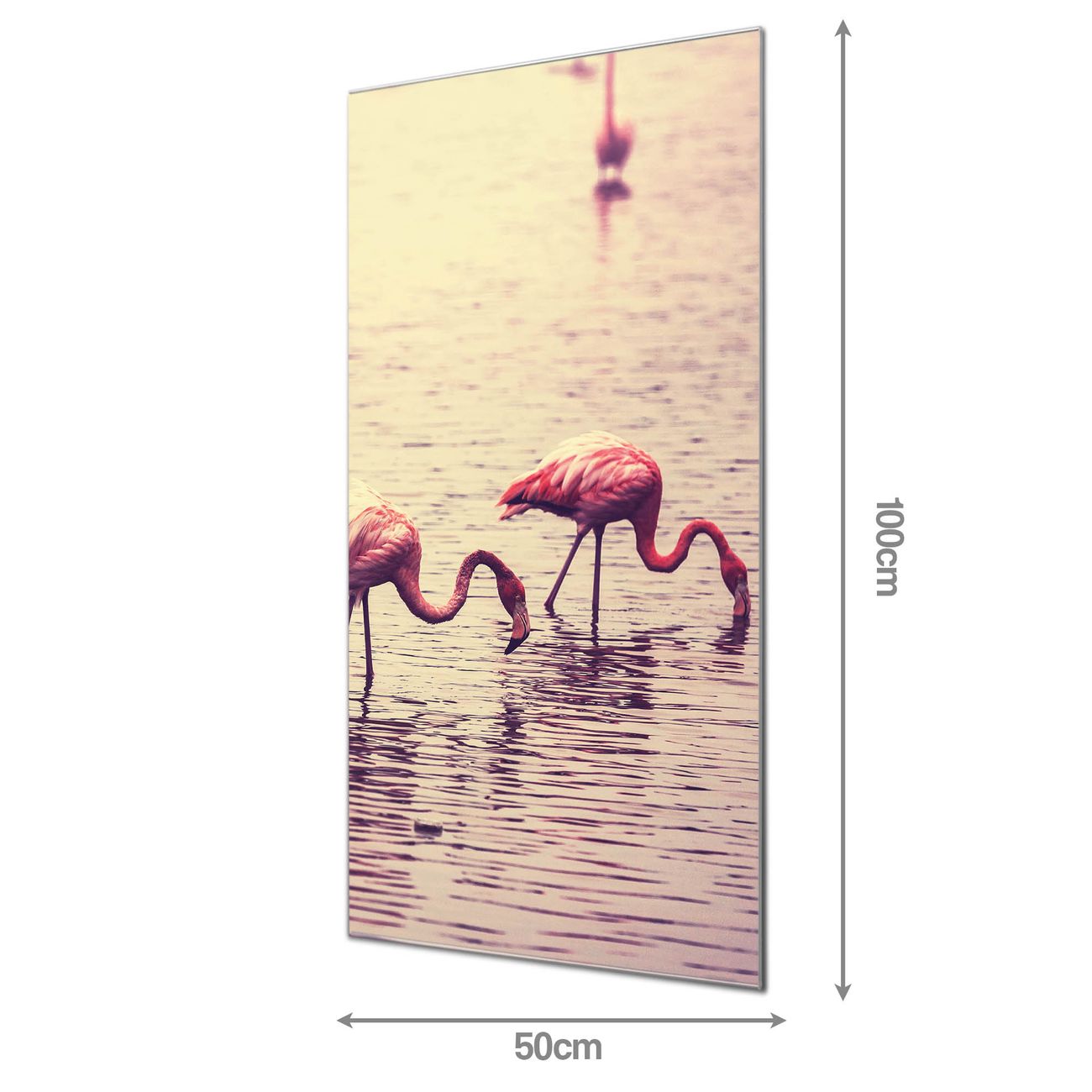 Material: 4mm Sicherheitsglas mit Metallrückwand Eigenschaften: beschreibbar, magnetisch, kratzfest Maße: 50x100x0,6cm, 7,50 kg schwer Motiv Nummer 11734 Drei Flamnigos Zubehör: inklusive 4 Neodym-Magnete