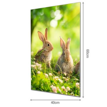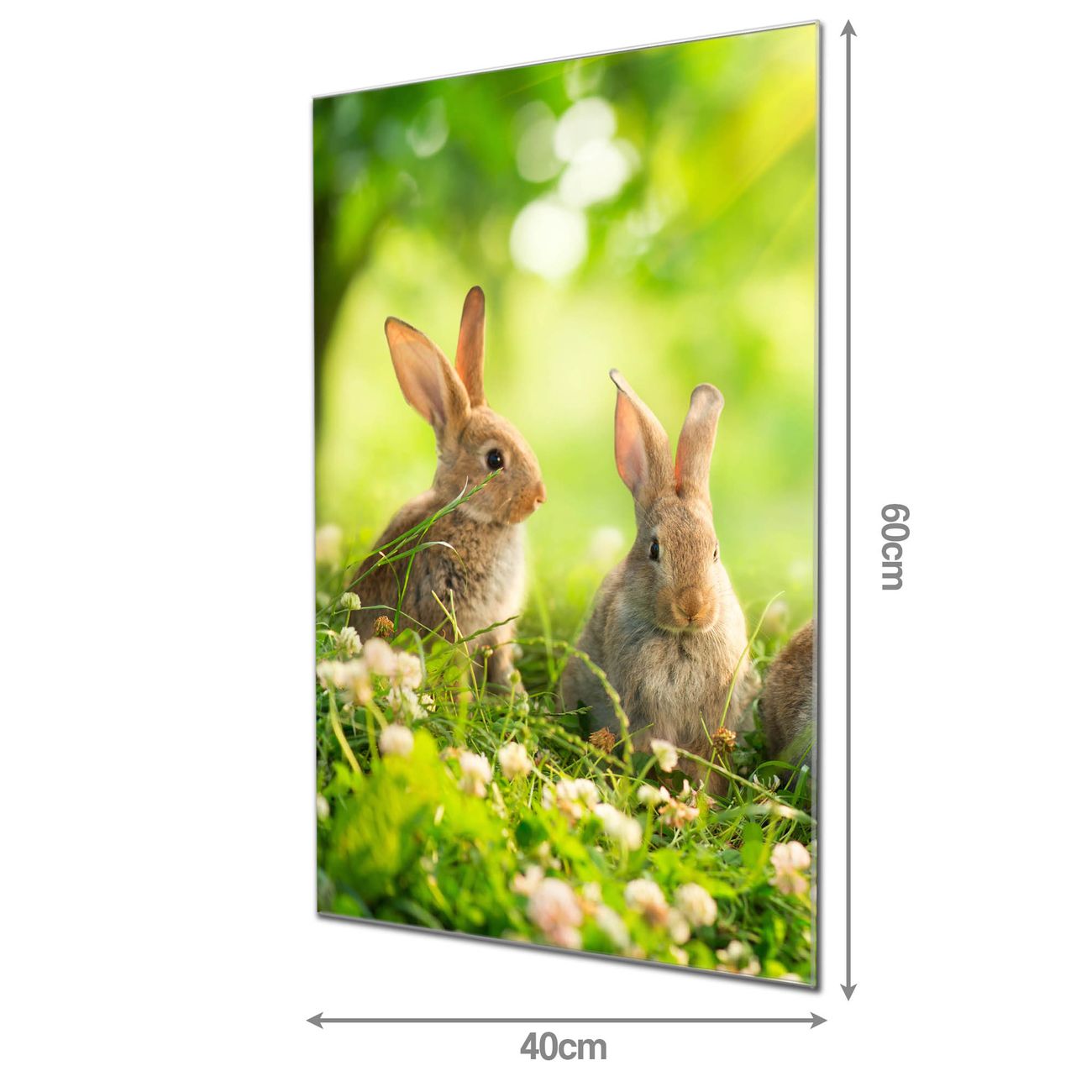 Material: 4mm Sicherheitsglas mit Metallrückwand Eigenschaften: beschreibbar, magnetisch, kratzfest Maße: 40x60x0,6cm, 3,60 kg schwer Motiv Nummer 11125 Drei Hasen Zubehör: inklusive 4 Neodym-Magnete