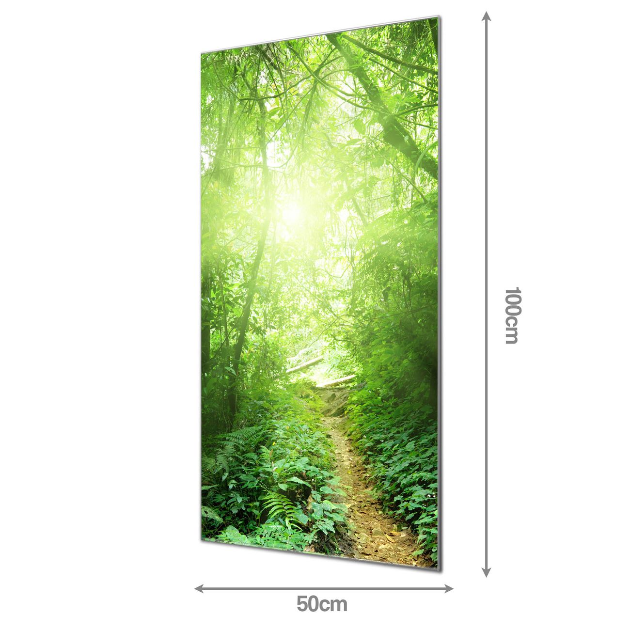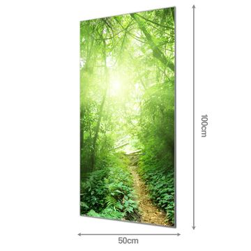 Material: 4mm Sicherheitsglas mit Metallrückwand Eigenschaften: beschreibbar, magnetisch, kratzfest Maße: 50x100x0,6cm, 7,50 kg schwer Motiv Nummer 12693 Dschungel Malaysia Zubehör: inklusive 4 Neodym-Magnete