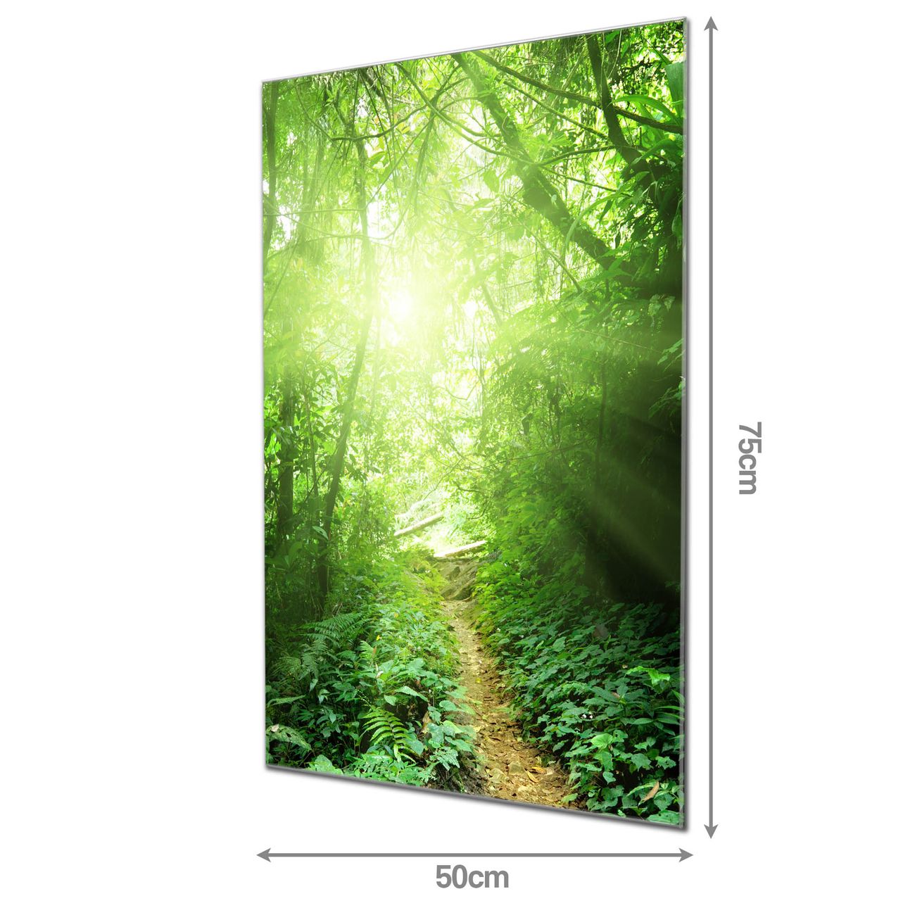 Material: 4mm Sicherheitsglas mit Metallrückwand Eigenschaften: beschreibbar, magnetisch, kratzfest Maße: 50x75x0,6cm, 5,63 kg schwer Motiv Nummer 12693 Dschungel Malaysia Zubehör: inklusive 4 Neodym-Magnete