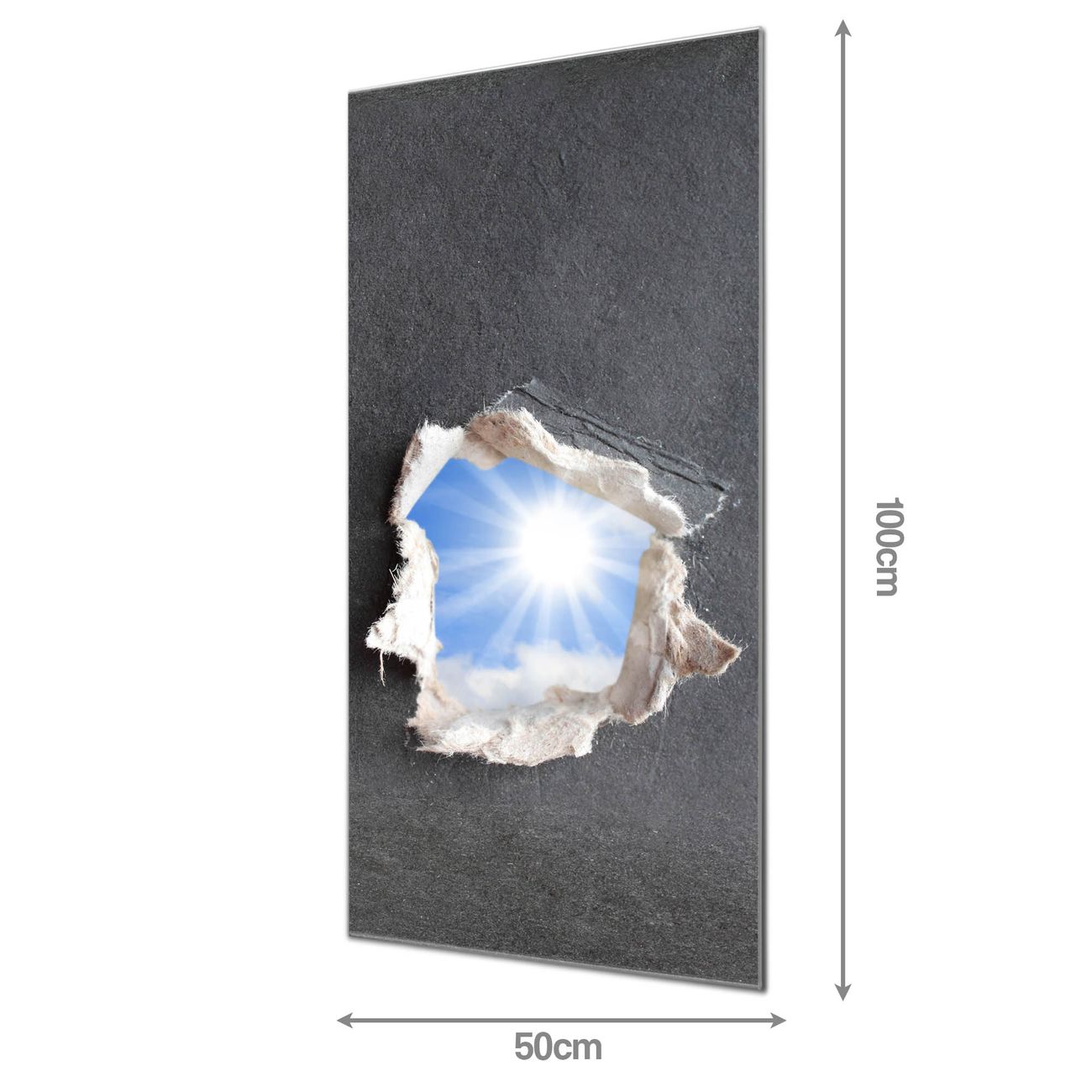 Material: 4mm Sicherheitsglas mit Metallrückwand Eigenschaften: beschreibbar, magnetisch, kratzfest Maße: 50x100x0,6cm, 7,50 kg schwer Motiv Nummer 10197 Durchblick Zubehör: inklusive 4 Neodym-Magnete