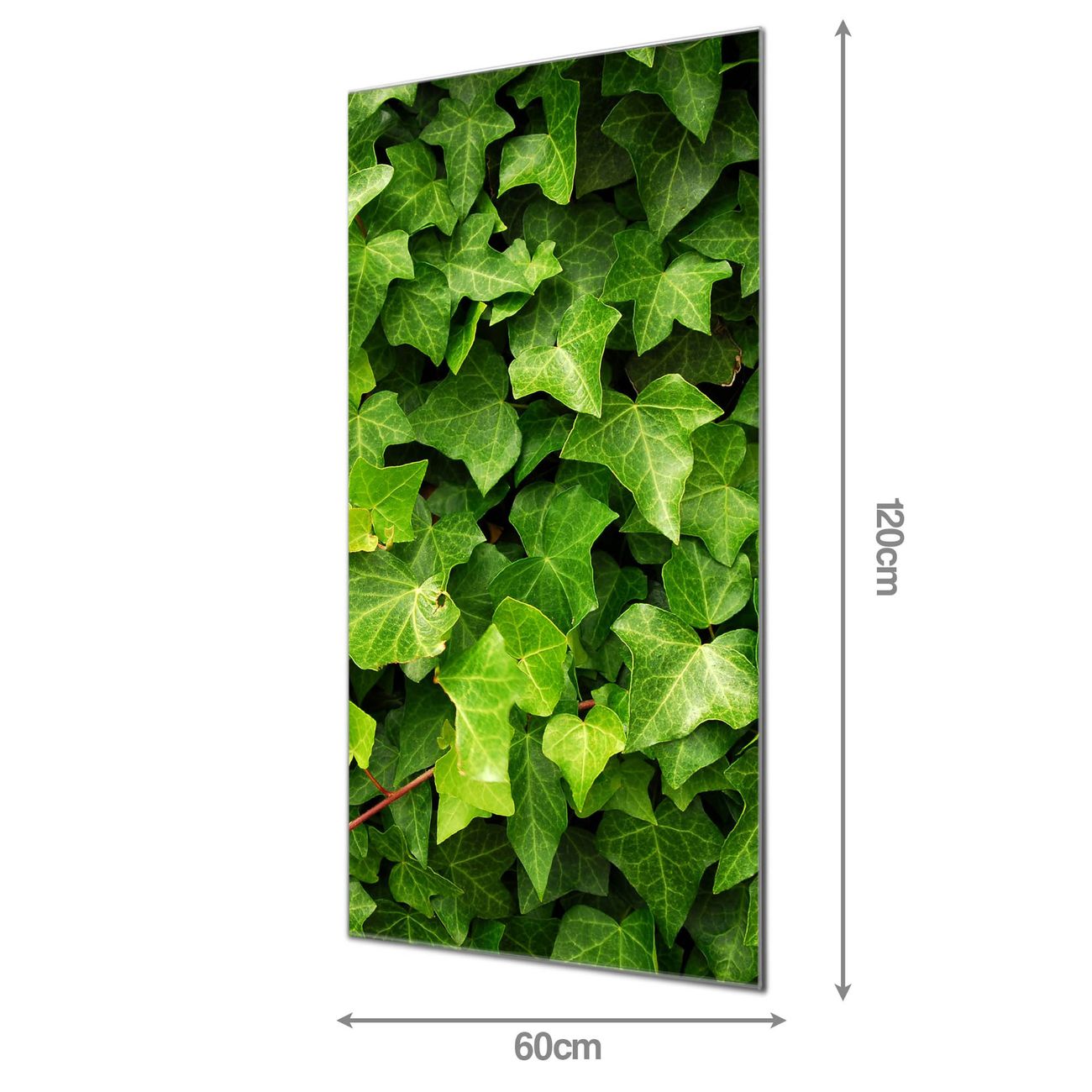 Material: 4mm Sicherheitsglas mit Metallrückwand Eigenschaften: beschreibbar, magnetisch, kratzfest Maße: 60x120x0,6cm, 10,80 kg schwer Motiv Nummer 10083 Efeu Zubehör: inklusive 4 Neodym-Magnete