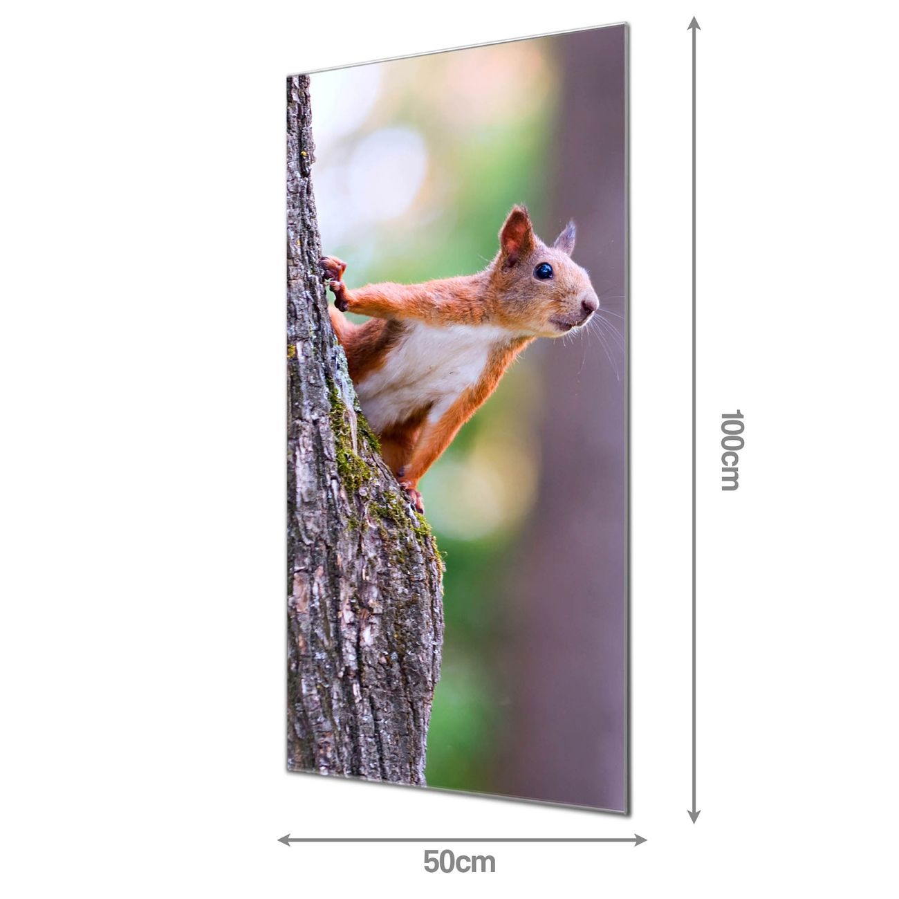Material: 4mm Sicherheitsglas mit Metallrückwand Eigenschaften: beschreibbar, magnetisch, kratzfest Maße: 50x100x0,6cm, 7,50 kg schwer Motiv Nummer 10326 Eichhörnchen Zubehör: inklusive 4 Neodym-Magnete