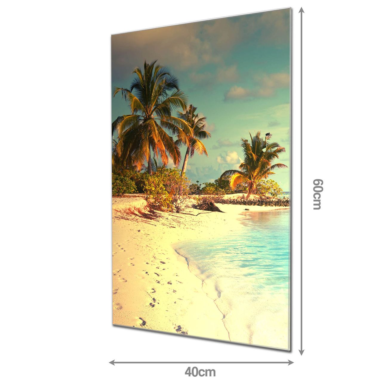 Material: 4mm Sicherheitsglas mit Metallrückwand Eigenschaften: beschreibbar, magnetisch, kratzfest Maße: 40x60x0,6cm, 3,60 kg schwer Motiv Nummer 11723 Einsame Insel Zubehör: inklusive 4 Neodym-Magnete