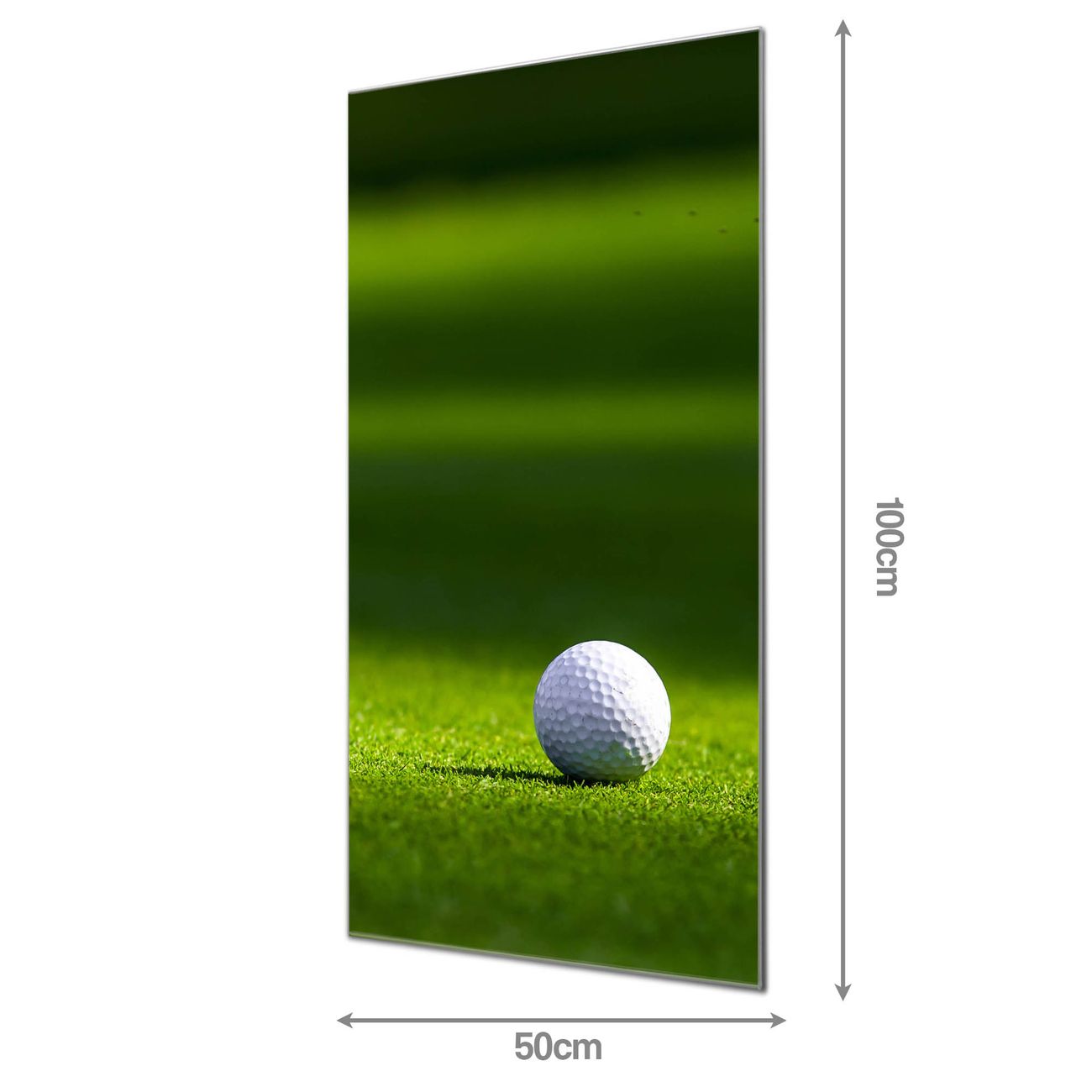 Material: 4mm Sicherheitsglas mit Metallrückwand Eigenschaften: beschreibbar, magnetisch, kratzfest Maße: 50x100x0,6cm, 7,50 kg schwer Motiv Nummer 10740 Einsamer Golfball Zubehör: inklusive 4 Neodym-Magnete