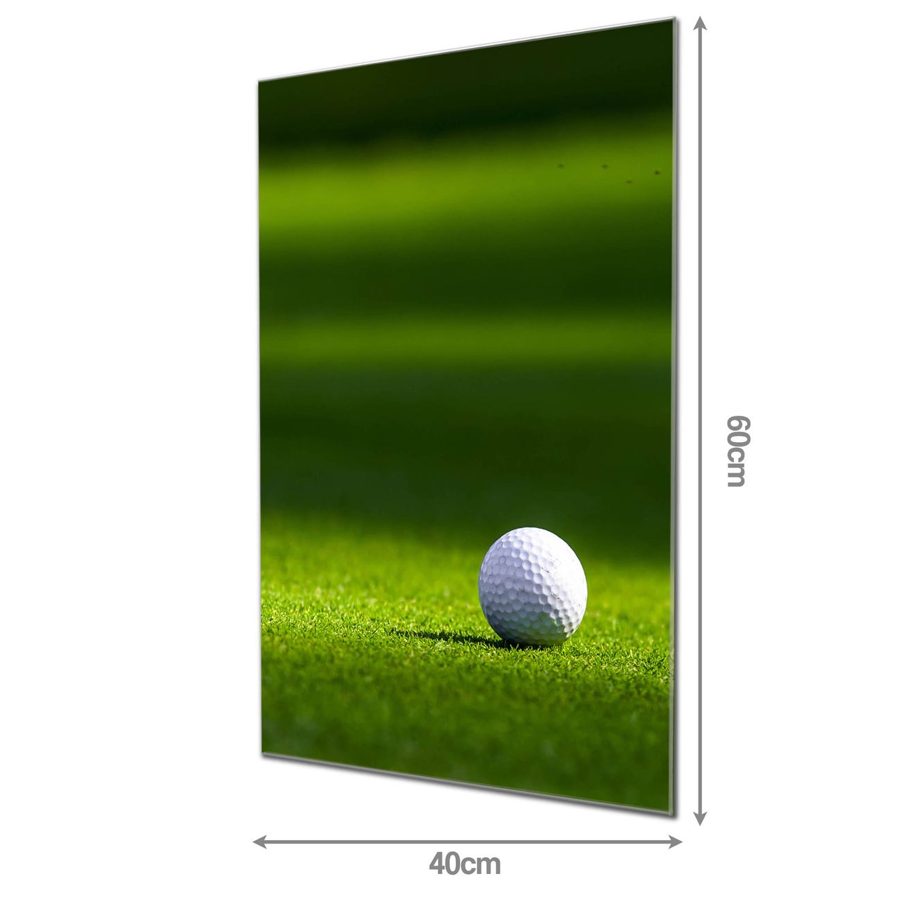 Material: 4mm Sicherheitsglas mit Metallrückwand Eigenschaften: beschreibbar, magnetisch, kratzfest Maße: 40x60x0,6cm, 3,60 kg schwer Motiv Nummer 10740 Einsamer Golfball Zubehör: inklusive 4 Neodym-Magnete