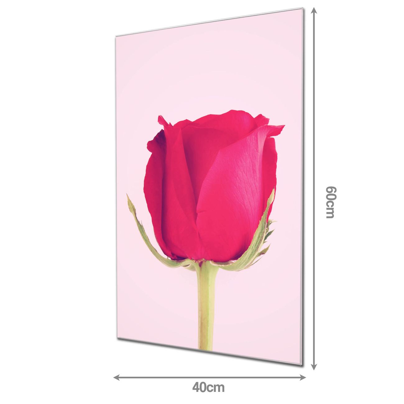 Material: 4mm Sicherheitsglas mit Metallrückwand Eigenschaften: beschreibbar, magnetisch, kratzfest Maße: 40x60x0,6cm, 3,60 kg schwer Motiv Nummer 12329 Einzelne Rose Zubehör: inklusive 4 Neodym-Magnete
