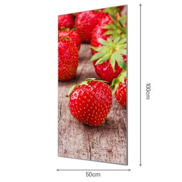 Material: 4mm Sicherheitsglas mit Metallrückwand Eigenschaften: beschreibbar, magnetisch, kratzfest Maße: 50x100x0,6cm, 7,50 kg schwer Motiv Nummer 11815 Erdbeeren Zubehör: inklusive 4 Neodym-Magnete