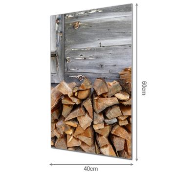 Material: 4mm Sicherheitsglas mit Metallrückwand Eigenschaften: beschreibbar, magnetisch, kratzfest Maße: 40x60x0,6cm, 3,60 kg schwer Motiv Nummer 11294 Feuerholz Zubehör: inklusive 4 Neodym-Magnete