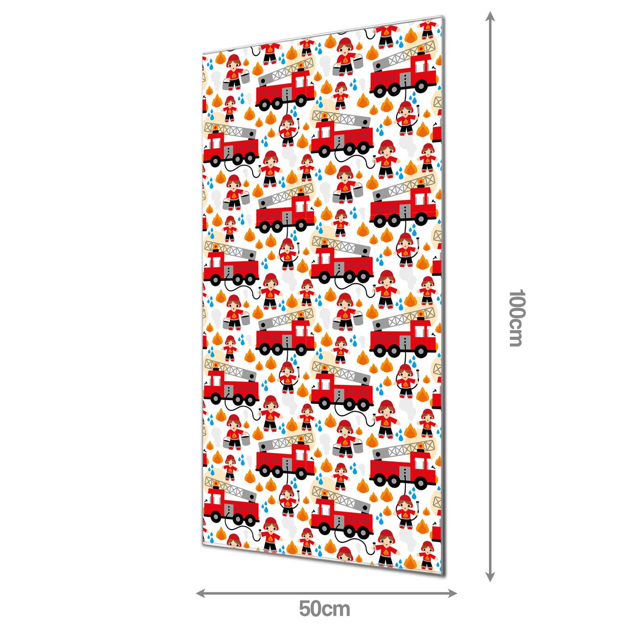 Material: 4mm Sicherheitsglas mit Metallrückwand Eigenschaften: beschreibbar, magnetisch, kratzfest Maße: 50x100x0,6cm, 7,50 kg schwer Motiv Nummer 11371 Feuerwehr Zubehör: inklusive 4 Neodym-Magnete