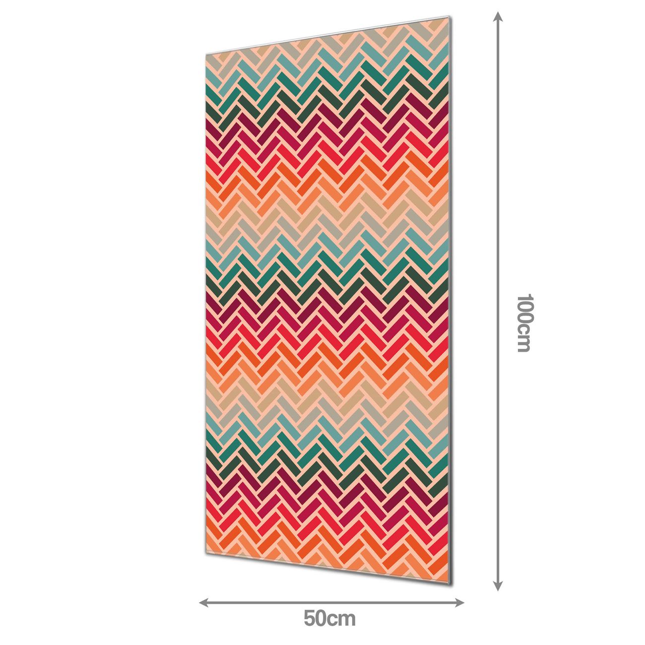 Material: 4mm Sicherheitsglas mit Metallrückwand Eigenschaften: beschreibbar, magnetisch, kratzfest Maße: 50x100x0,6cm, 7,50 kg schwer Motiv Nummer 11724 Fischgräten Zubehör: inklusive 4 Neodym-Magnete