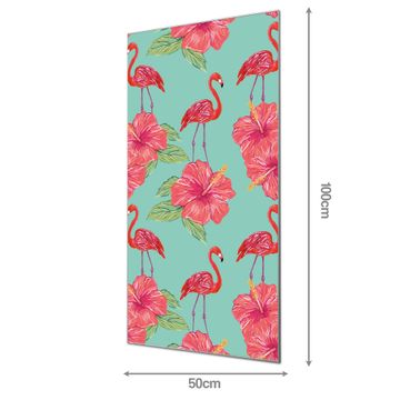 Material: 4mm Sicherheitsglas mit Metallrückwand Eigenschaften: beschreibbar, magnetisch, kratzfest Maße: 50x100x0,6cm, 7,50 kg schwer Motiv Nummer 12633 Flamingo Liebe Zubehör: inklusive 4 Neodym-Magnete