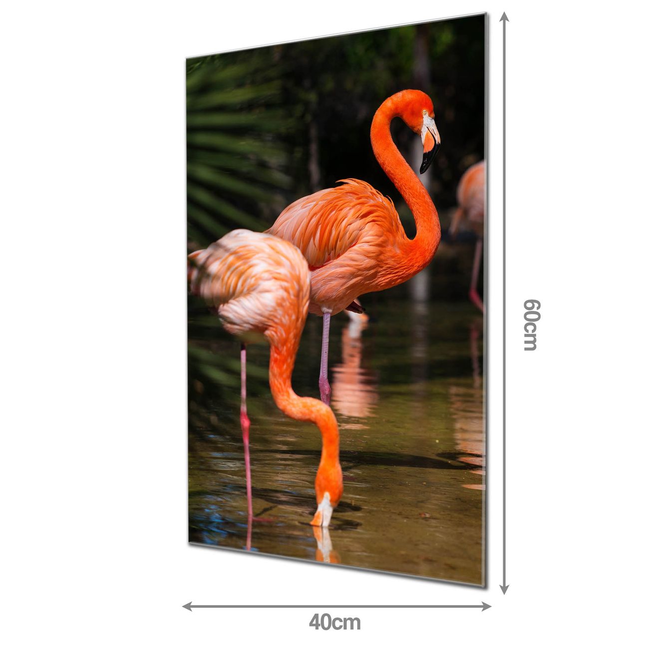 Material: 4mm Sicherheitsglas mit Metallrückwand Eigenschaften: beschreibbar, magnetisch, kratzfest Maße: 40x60x0,6cm, 3,60 kg schwer Motiv Nummer 10501 Flamingo Zubehör: inklusive 4 Neodym-Magnete