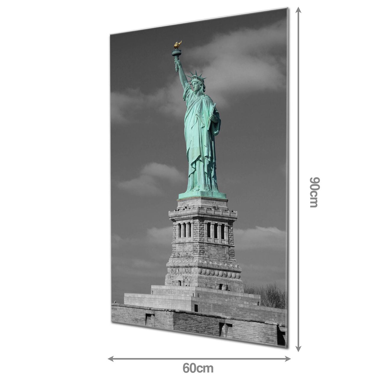 Material  4mm Sicherheitsglas mit Metallrückwand Eigenschaften  beschreibbar, magnetisch, kratzfest Maße  60x90x0,6cm, 8,10 kg schwer Motiv  Nummer 10173 Freiheitsstatue Zubehör  inklusive 4 Neodym-Magnete