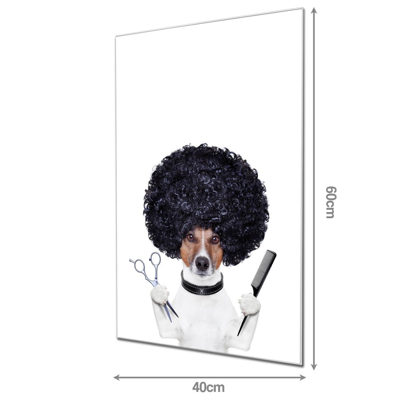 Material: 4mm Sicherheitsglas mit Metallrückwand Eigenschaften: beschreibbar, magnetisch, kratzfest Maße: 40x60x0,6cm, 3,60 kg schwer Motiv Nummer 10651 Friseur Jack Russel Zubehör: inklusive 4 Neodym-Magnete
