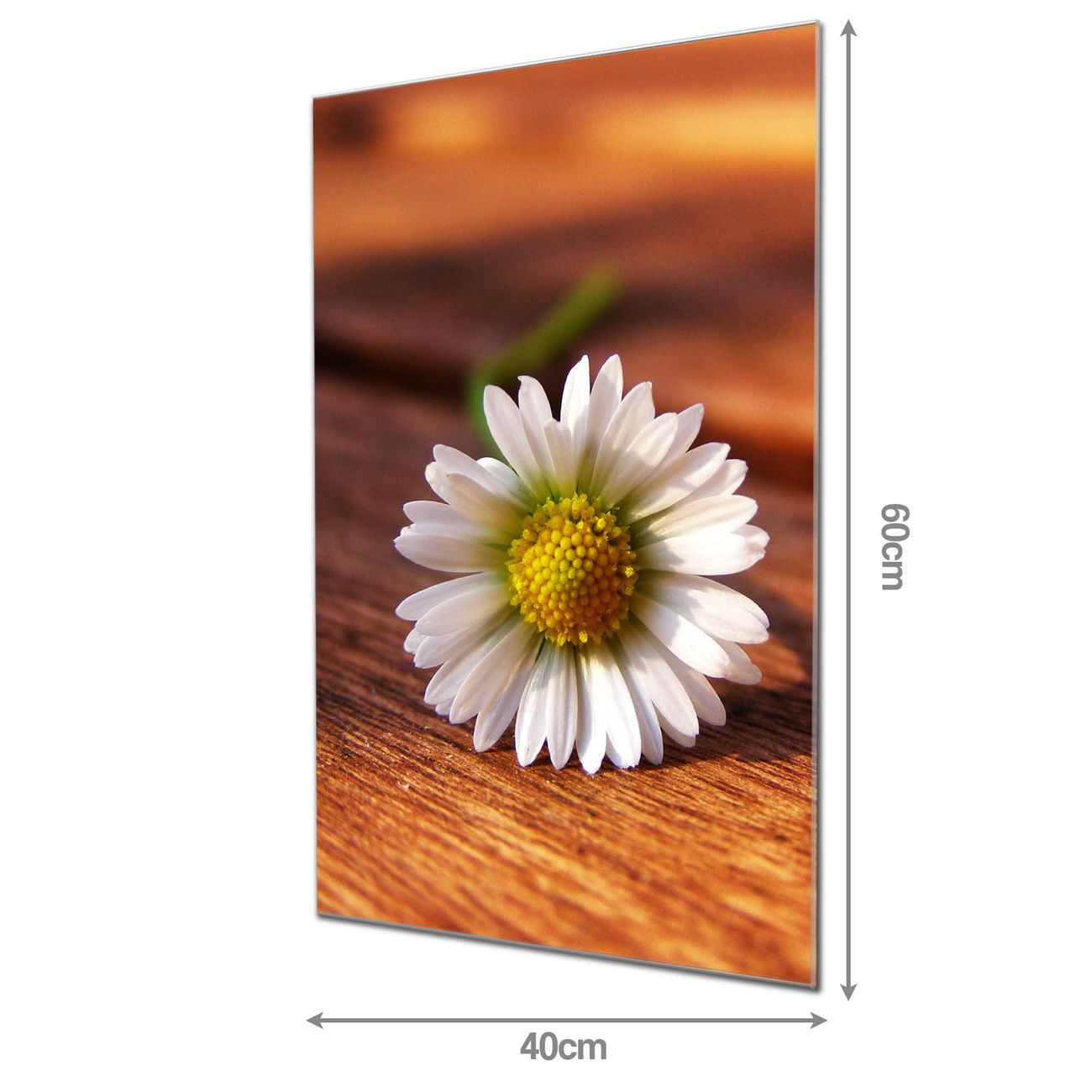 Material: 4mm Sicherheitsglas mit Metallrückwand Eigenschaften: beschreibbar, magnetisch, kratzfest Maße: 40x60x0,6cm, 3,60 kg schwer Motiv Nummer 10081 Gänseblümchen Zubehör: inklusive 4 Neodym-Magnete