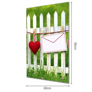 Material: 4mm Sicherheitsglas mit Metallrückwand Eigenschaften: beschreibbar, magnetisch, kratzfest Maße: 60x90x0,6cm, 8,10 kg schwer Motiv Nummer 10375 Gartenzaun Zubehör: inklusive 4 Neodym-Magnete