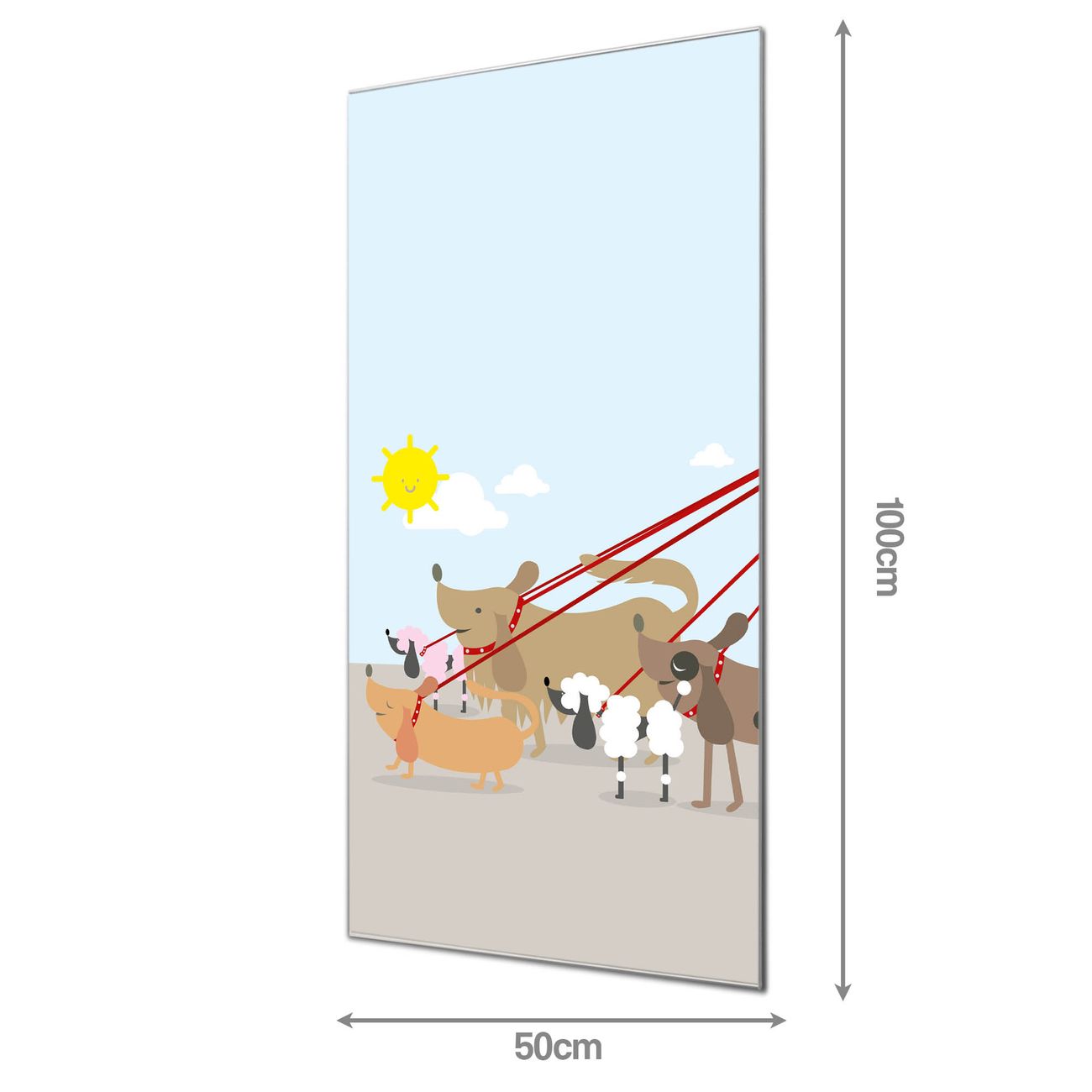 Material: 4mm Sicherheitsglas mit Metallrückwand Eigenschaften: beschreibbar, magnetisch, kratzfest Maße: 50x100x0,6cm, 7,50 kg schwer Motiv Nummer 11883 Gassi Gehen Zubehör: inklusive 4 Neodym-Magnete