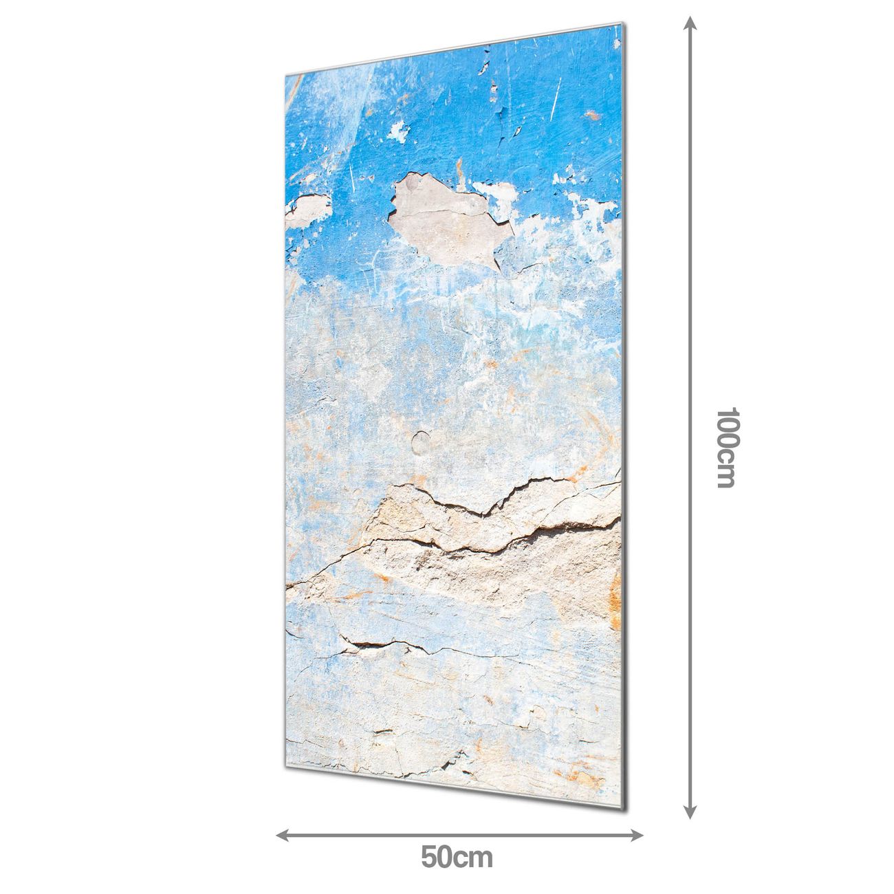 Material: 4mm Sicherheitsglas mit Metallrückwand Eigenschaften: beschreibbar, magnetisch, kratzfest Maße: 50x100x0,6cm, 7,50 kg schwer Motiv Nummer 11761 Gebrochene Wand Zubehör: inklusive 4 Neodym-Magnete