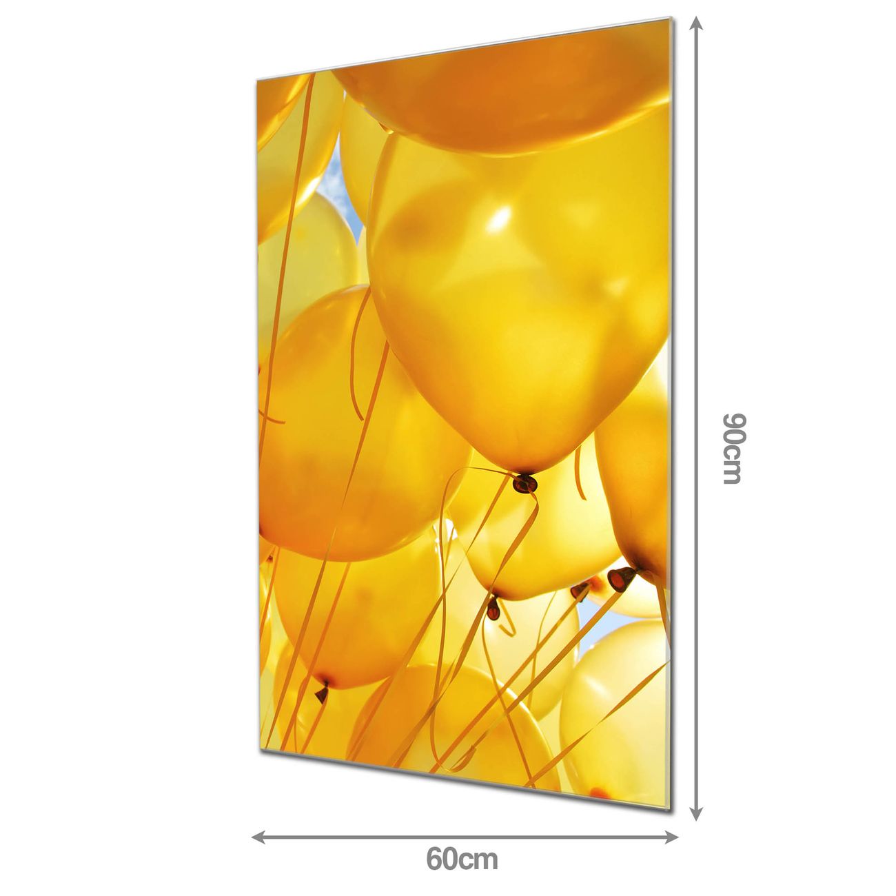 Material: 4mm Sicherheitsglas mit Metallrückwand Eigenschaften: beschreibbar, magnetisch, kratzfest Maße: 60x90x0,6cm, 8,10 kg schwer Motiv Nummer 12460 Gelbe Luftballons Zubehör: inklusive 4 Neodym-Magnete