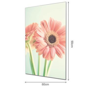 Material: 4mm Sicherheitsglas mit Metallrückwand Eigenschaften: beschreibbar, magnetisch, kratzfest Maße: 60x90x0,6cm, 8,10 kg schwer Motiv Nummer 11896 Fünf Gerbera Zubehör: inklusive 4 Neodym-Magnete