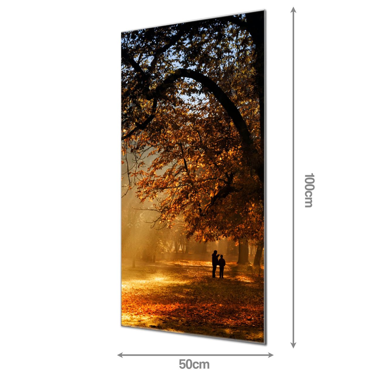 Material: 4mm Sicherheitsglas mit Metallrückwand Eigenschaften: beschreibbar, magnetisch, kratzfest Maße: 50x100x0,6cm, 7,50 kg schwer Motiv Nummer 10445 Goldener Herbst Zubehör: inklusive 4 Neodym-Magnete