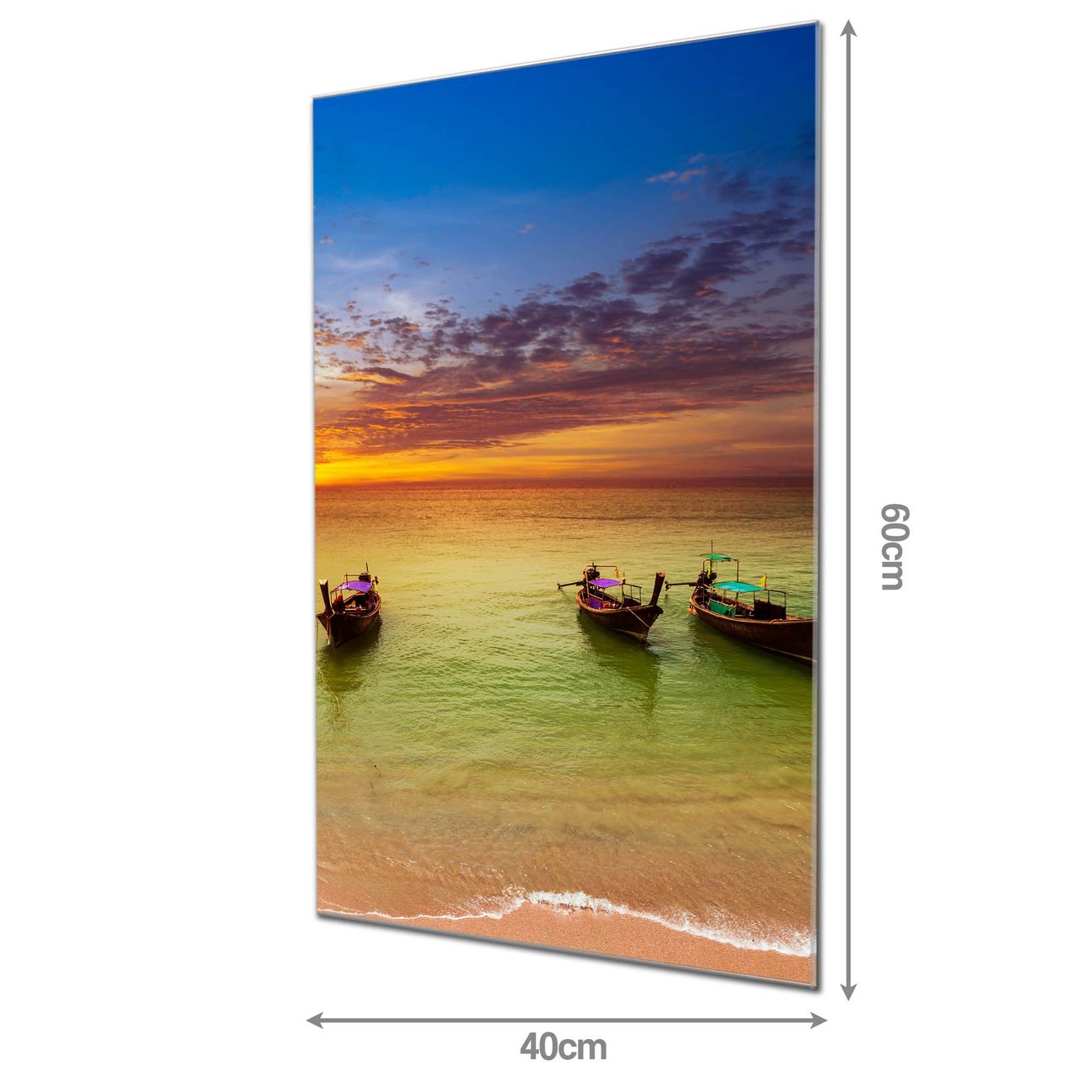 Material: 4mm Sicherheitsglas mit Metallrückwand Eigenschaften: beschreibbar, magnetisch, kratzfest Maße: 40x60x0,6cm, 3,60 kg schwer Motiv Nummer 12413 Golf Von Thailand Zubehör: inklusive 4 Neodym-Magnete