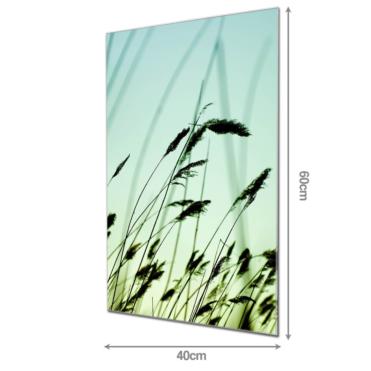 Material: 4mm Sicherheitsglas mit Metallrückwand Eigenschaften: beschreibbar, magnetisch, kratzfest Maße: 40x60x0,6cm, 3,60 kg schwer Motiv Nummer 12534 Gräser Zubehör: inklusive 4 Neodym-Magnete