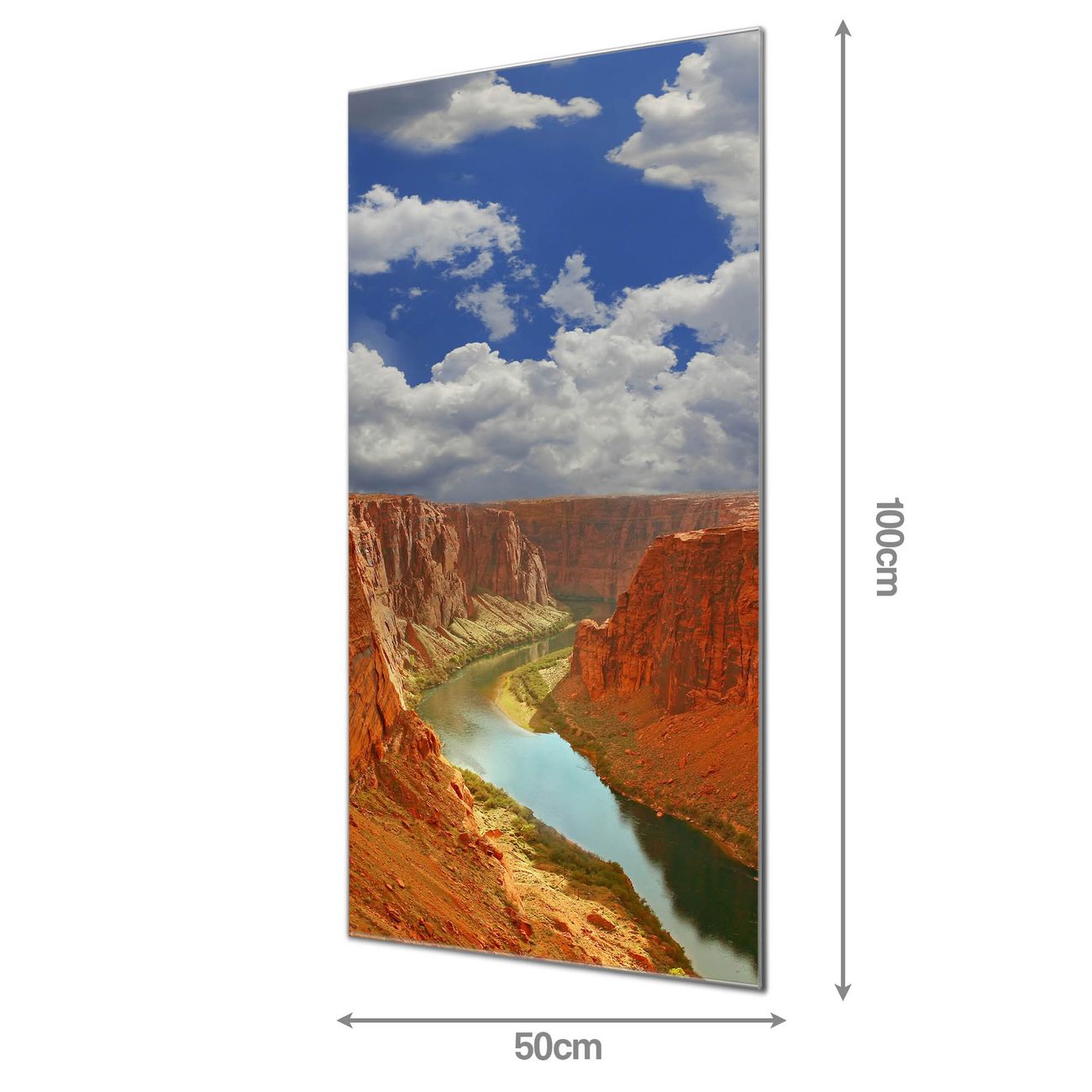 Material: 4mm Sicherheitsglas mit Metallrückwand Eigenschaften: beschreibbar, magnetisch, kratzfest Maße: 50x100x0,6cm, 7,50 kg schwer Motiv Nummer 10091 Grand Canyon Zubehör: inklusive 4 Neodym-Magnete