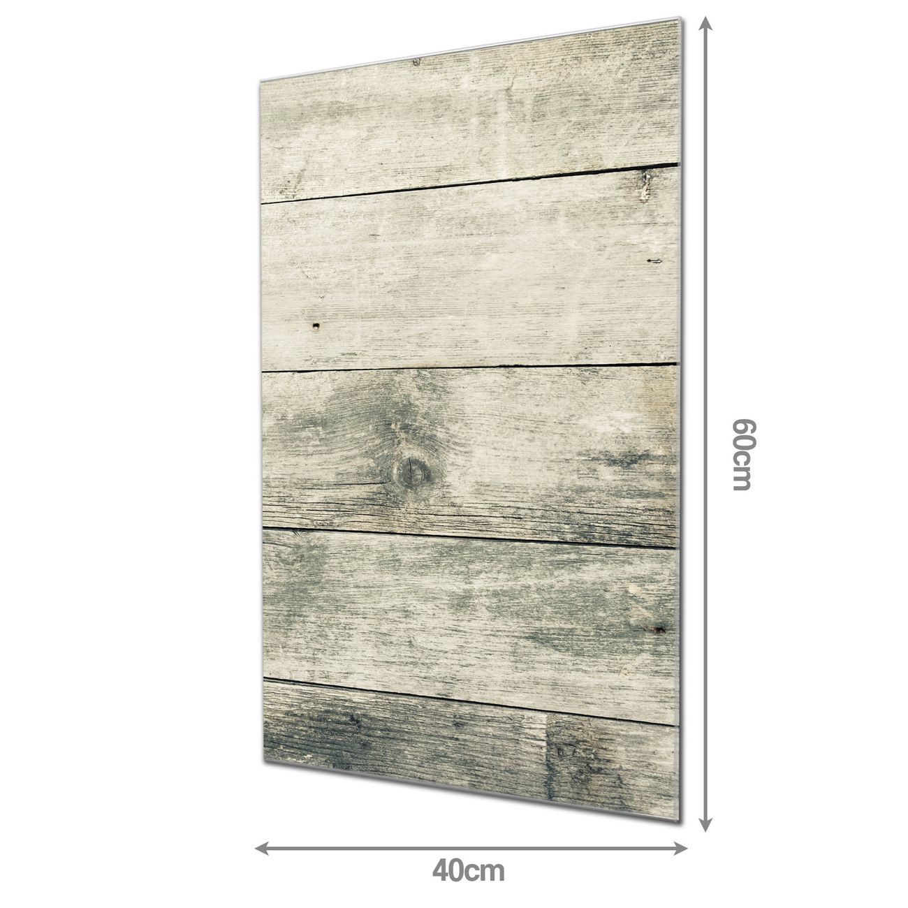 Material: 4mm Sicherheitsglas mit Metallrückwand Eigenschaften: beschreibbar, magnetisch, kratzfest Maße: 40x60x0,6cm, 3,60 kg schwer Motiv Nummer 11468 Graue Planken Zubehör: inklusive 4 Neodym-Magnete