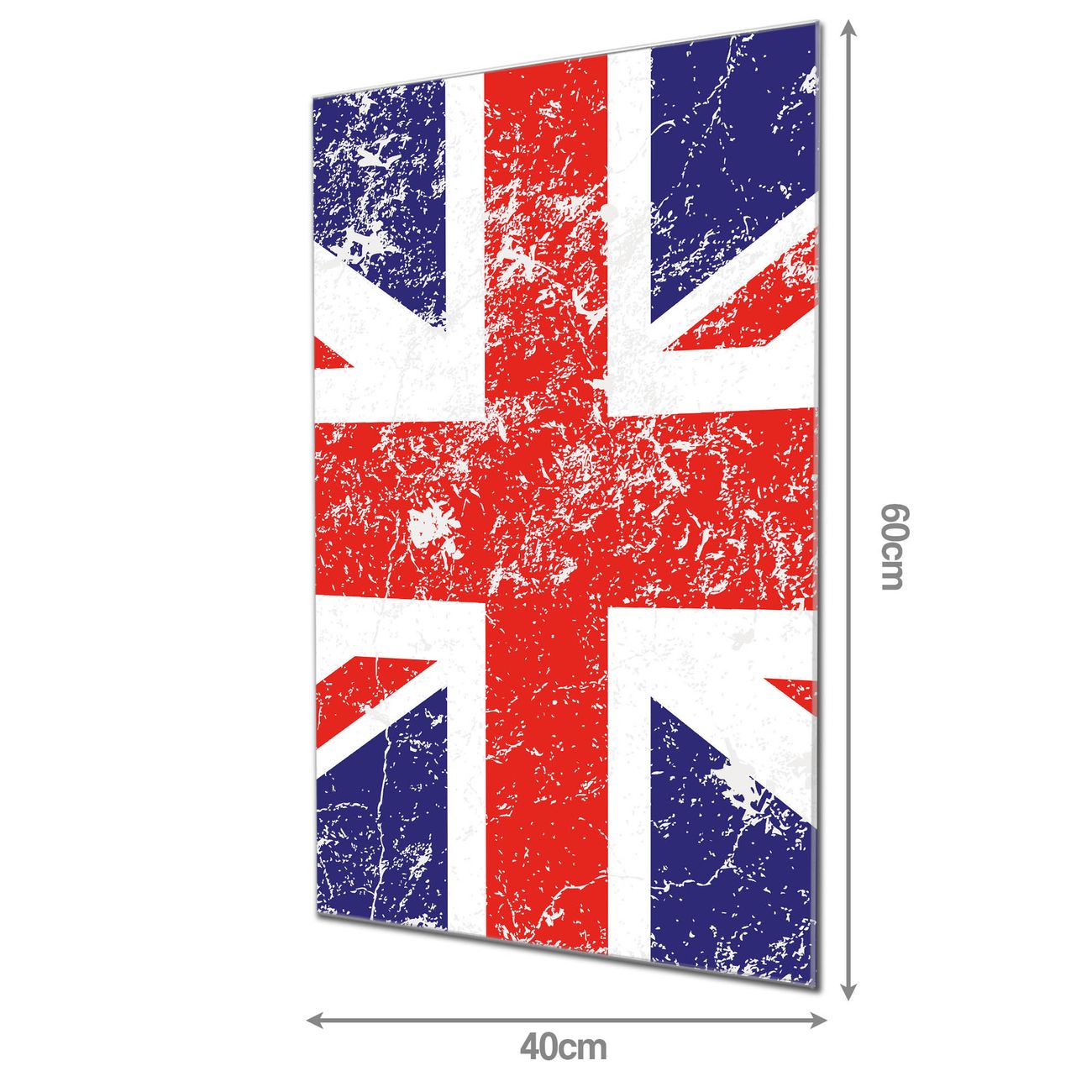 Material: 4mm Sicherheitsglas mit Metallrückwand Eigenschaften: beschreibbar, magnetisch, kratzfest Maße: 40x60x0,6cm, 3,60 kg schwer Motiv Nummer 10206 Great Britain Zubehör: inklusive 4 Neodym-Magnete