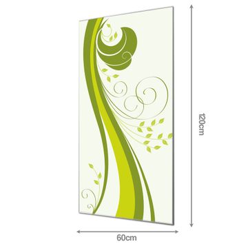 Material  4mm Sicherheitsglas mit Metallrückwand Eigenschaften  beschreibbar, magnetisch, kratzfest Maße  60x120x0,6cm, 10,80 kg schwer Motiv  Nummer 10331 Green Swirl Zubehör  inklusive 4 Neodym-Magnete