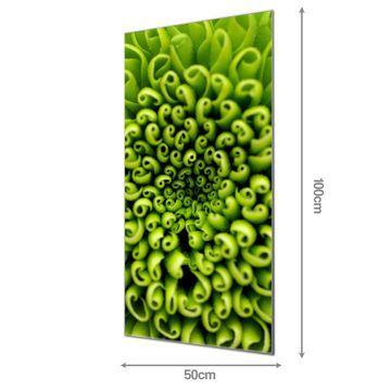 Material: 4mm Sicherheitsglas mit Metallrückwand Eigenschaften: beschreibbar, magnetisch, kratzfest Maße: 50x100x0,6cm, 7,50 kg schwer Motiv Nummer 12527 Grüne Chrysantheme Zubehör: inklusive 4 Neodym-Magnete