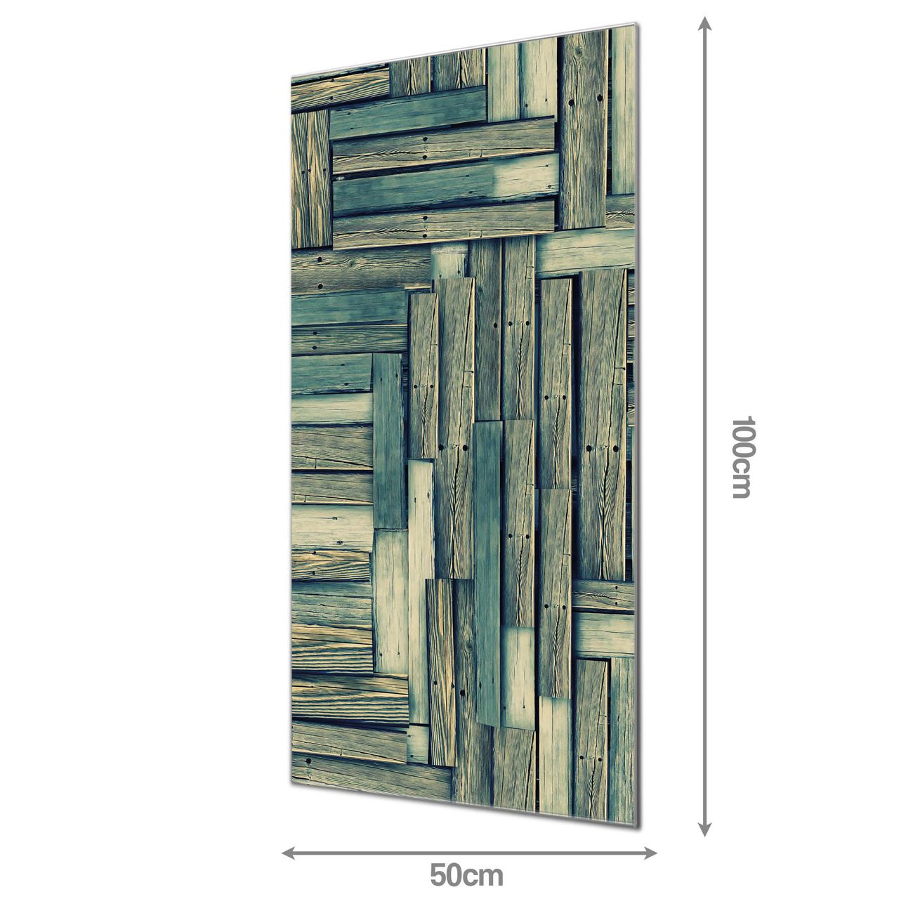 Material: 4mm Sicherheitsglas mit Metallrückwand Eigenschaften: beschreibbar, magnetisch, kratzfest Maße: 50x100x0,6cm, 7,50 kg schwer Motiv Nummer 11929 Grüne Planken Zubehör: inklusive 4 Neodym-Magnete