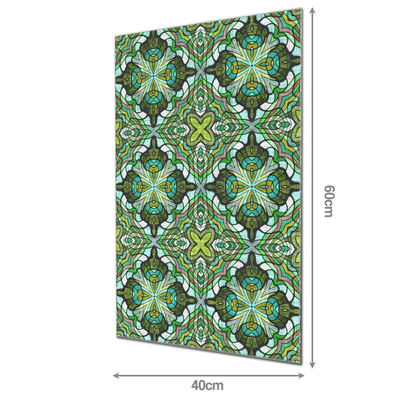 Material: 4mm Sicherheitsglas mit Metallrückwand Eigenschaften: beschreibbar, magnetisch, kratzfest Maße: 40x60x0,6cm, 3,60 kg schwer Motiv Nummer 10796 Grünes Muster Zubehör: inklusive 4 Neodym-Magnete