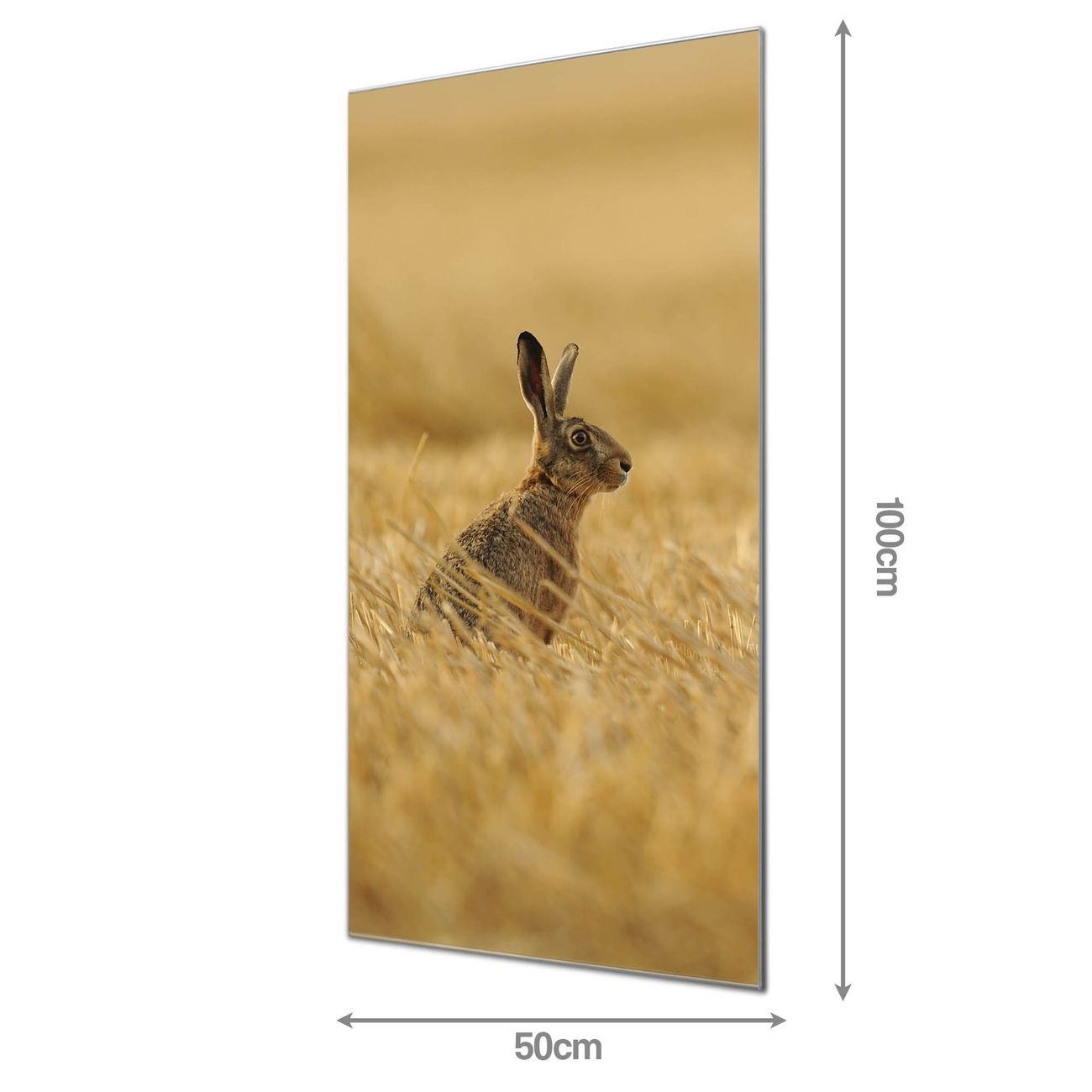 Material: 4mm Sicherheitsglas mit Metallrückwand Eigenschaften: beschreibbar, magnetisch, kratzfest Maße: 50x100x0,6cm, 7,50 kg schwer Motiv Nummer 10496 Hase Zubehör: inklusive 4 Neodym-Magnete