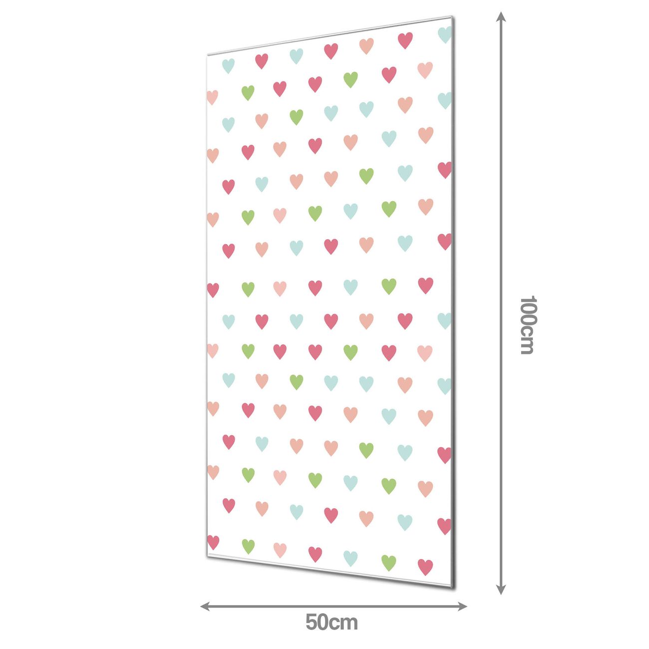 Material: 4mm Sicherheitsglas mit Metallrückwand Eigenschaften: beschreibbar, magnetisch, kratzfest Maße: 50x100x0,6cm, 7,50 kg schwer Motiv Nummer 11246 Herzen Auf Weiß Zubehör: inklusive 4 Neodym-Magnete