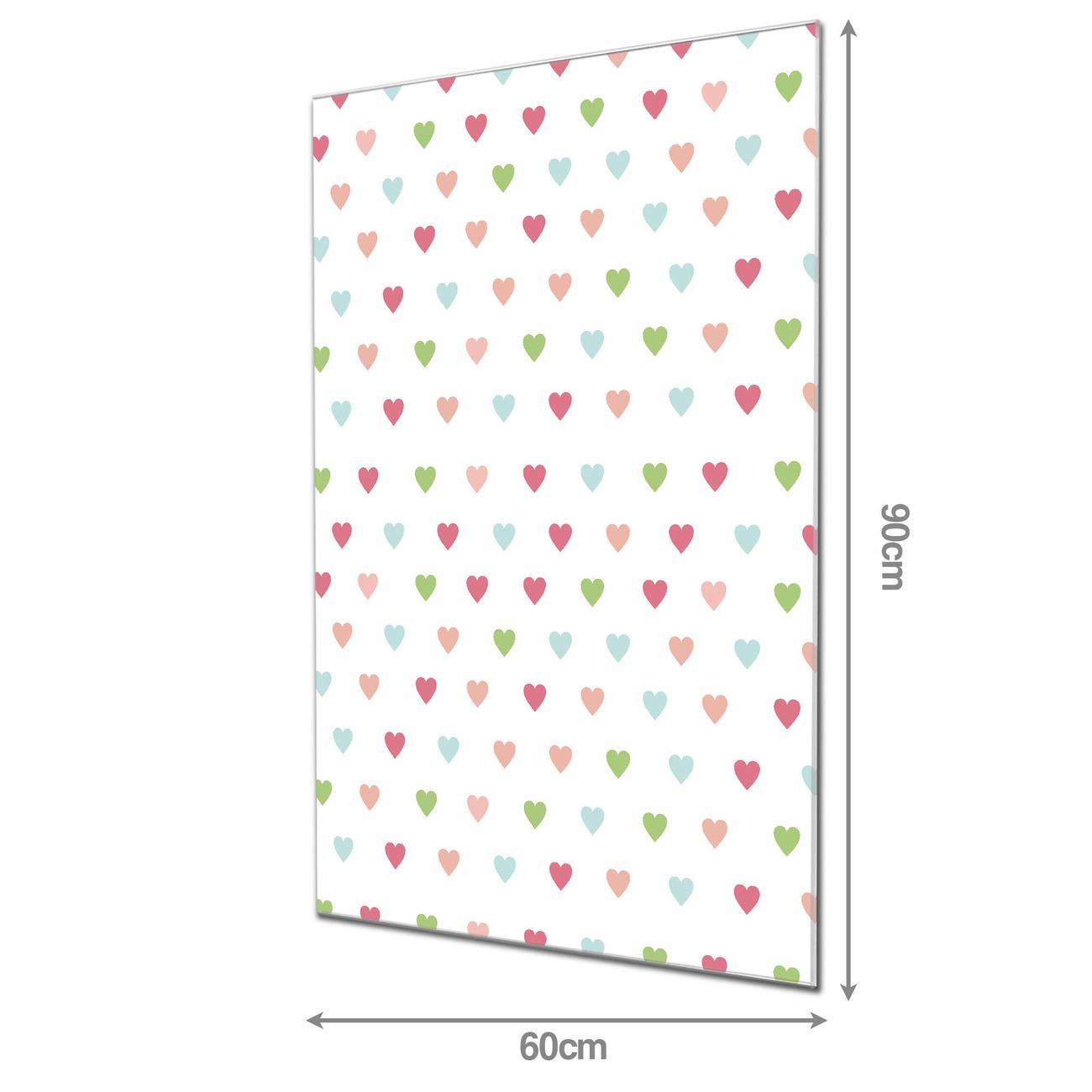 Material: 4mm Sicherheitsglas mit Metallrückwand Eigenschaften: beschreibbar, magnetisch, kratzfest Maße: 60x90x0,6cm, 8,10 kg schwer Motiv Nummer 11246 Herzen Auf Weiß Zubehör: inklusive 4 Neodym-Magnete