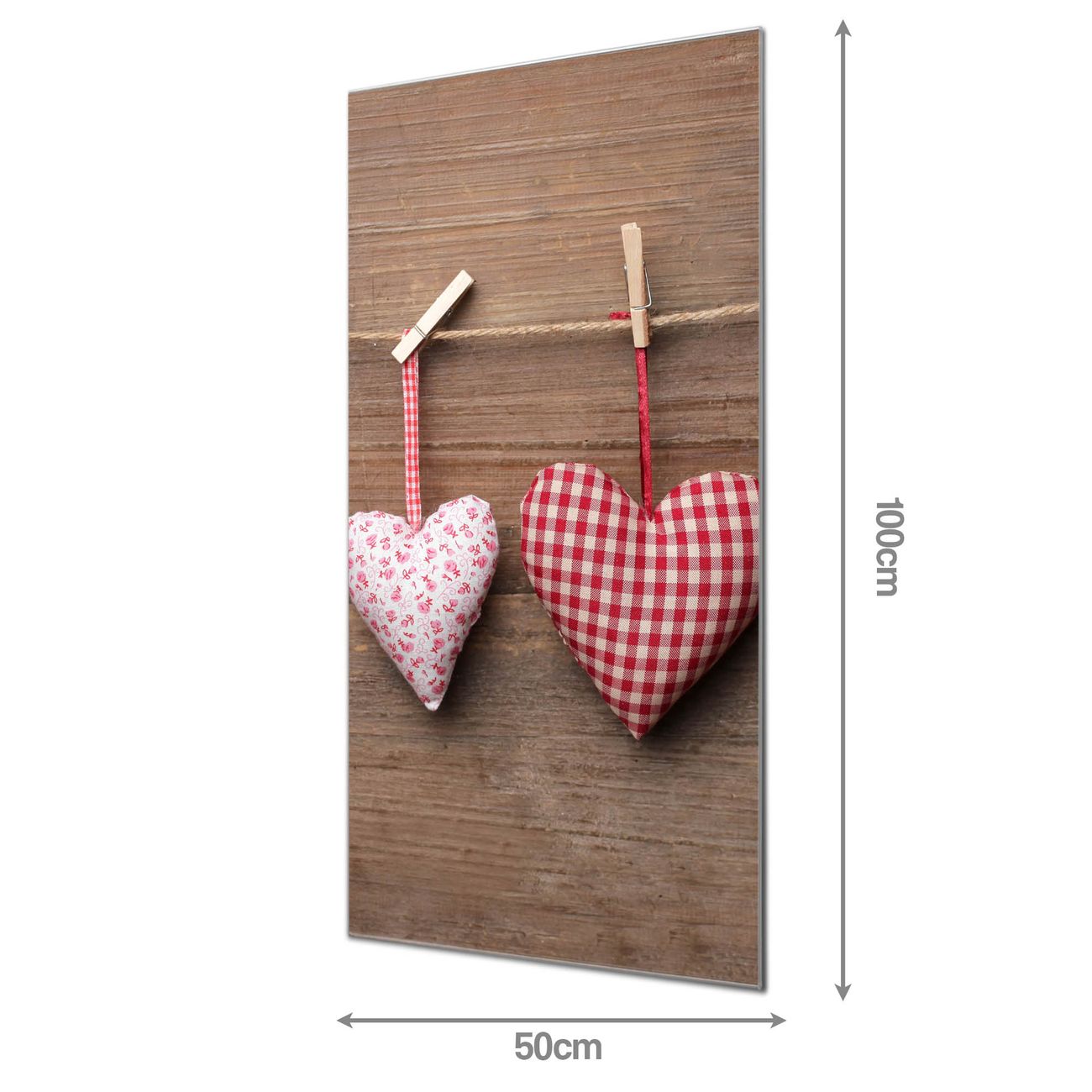 Material: 4mm Sicherheitsglas mit Metallrückwand Eigenschaften: beschreibbar, magnetisch, kratzfest Maße: 50x100x0,6cm, 7,50 kg schwer Motiv Nummer 10210 Herzen Zubehör: inklusive 4 Neodym-Magnete