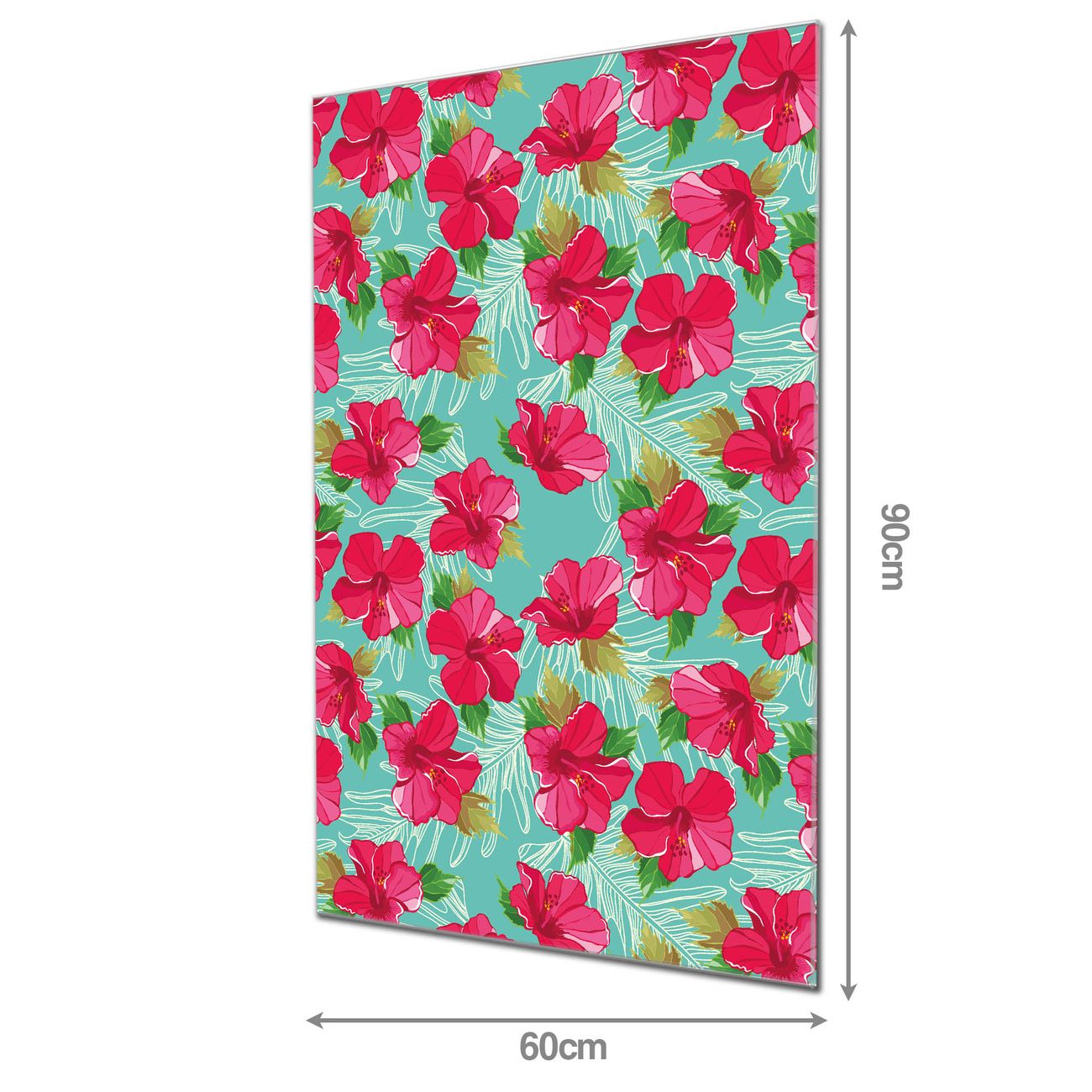 Material: 4mm Sicherheitsglas mit Metallrückwand Eigenschaften: beschreibbar, magnetisch, kratzfest Maße: 60x90x0,6cm, 8,10 kg schwer Motiv Nummer 11184 Hibiskus Zubehör: inklusive 4 Neodym-Magnete