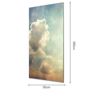 Material: 4mm Sicherheitsglas mit Metallrückwand Eigenschaften: beschreibbar, magnetisch, kratzfest Maße: 50x100x0,6cm, 7,50 kg schwer Motiv Nummer 12290 Himmel Vintage Zubehör: inklusive 4 Neodym-Magnete